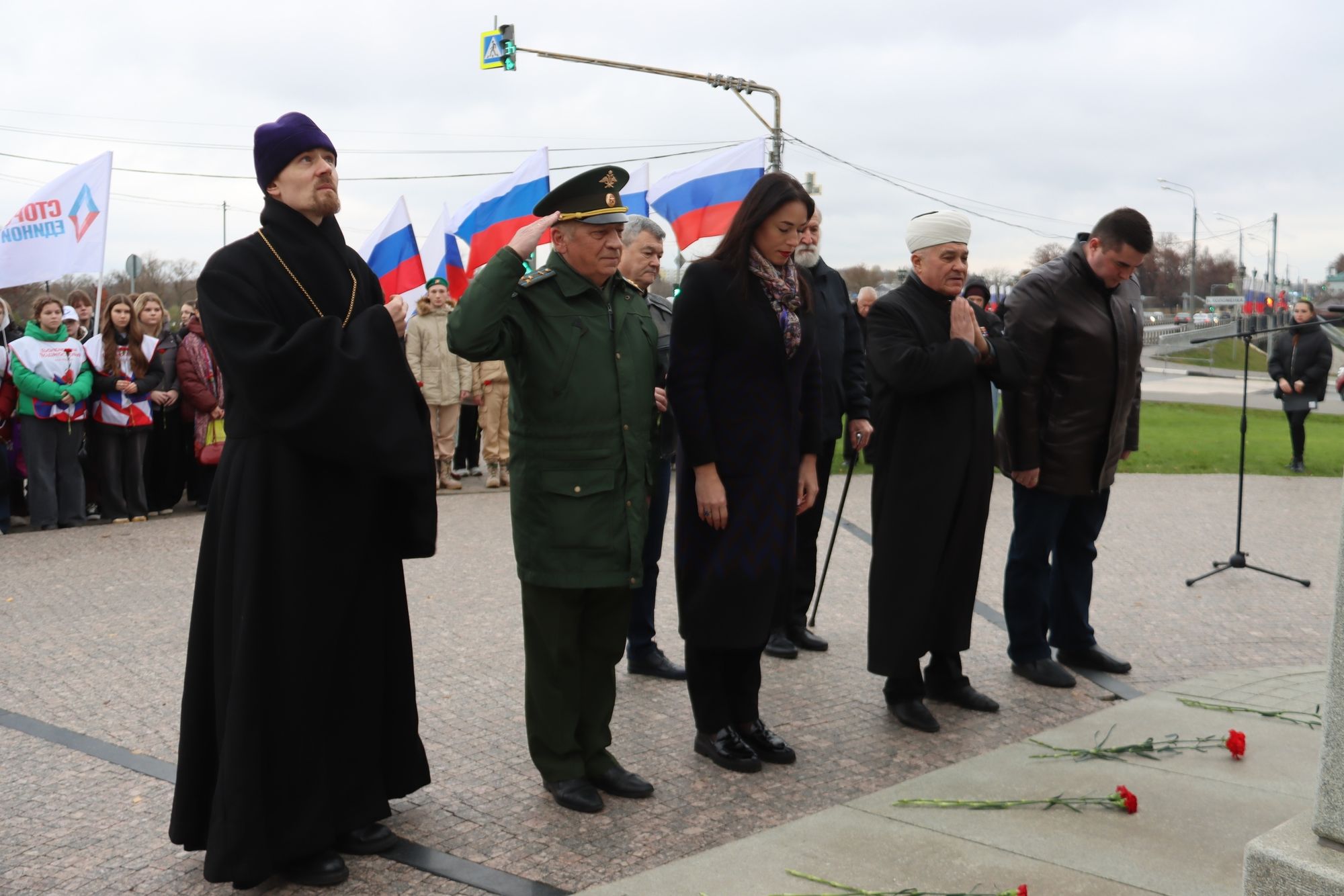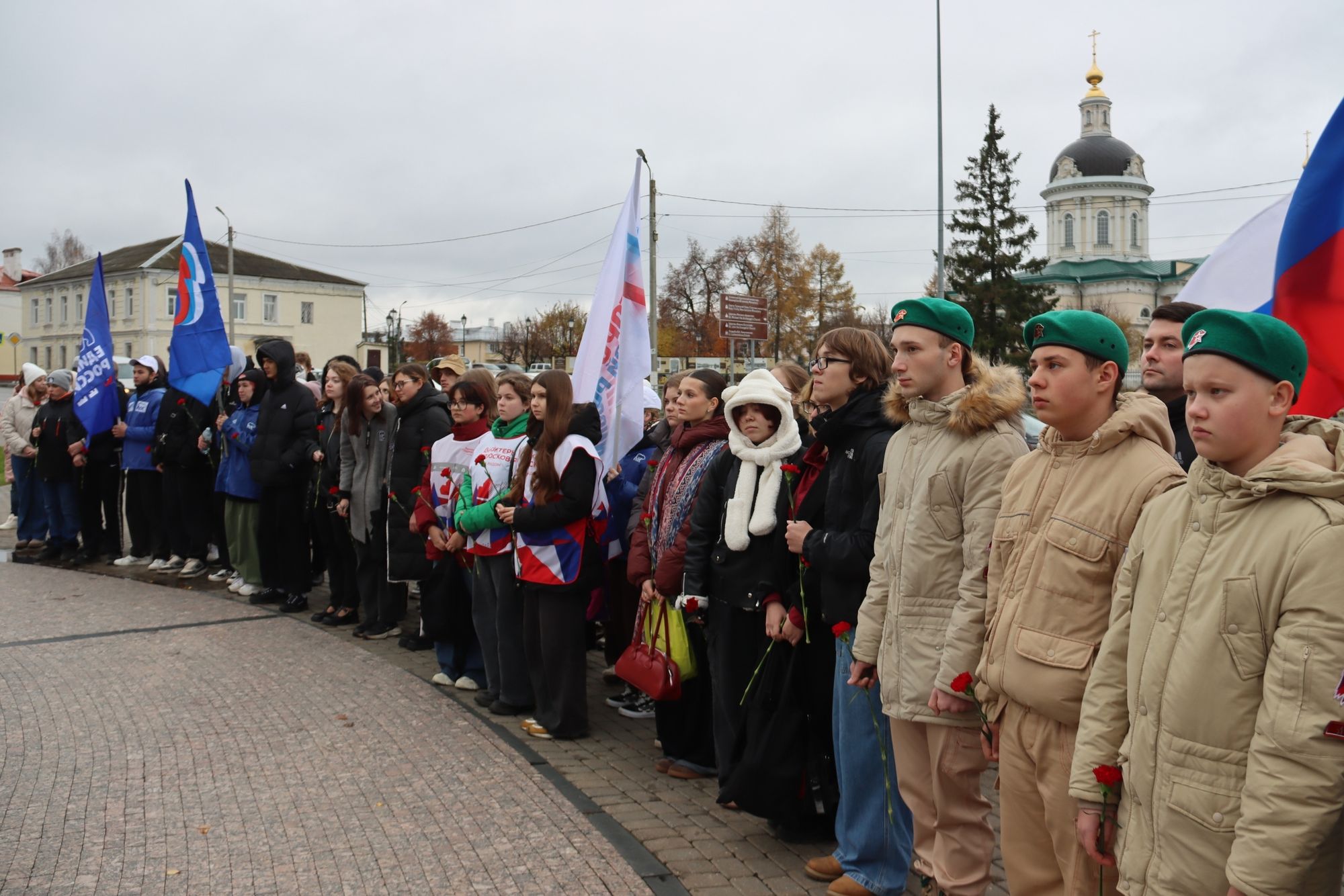 1 ноября 2025 года, в преддверии празднования Дня народного единства, в городе Коломна состоялся торжественное мероприятие. С приветственным словом к участникам акции обратился председатель Отдела по миссионерской работе и делам молодежи Коломенской епархии иерей Иоанн Бакушкин, который обратил внимание, что наше государственное единство имеет глубокую духовную основу. Как отмечается в Конституции России, мы сохраняем память предков, передавших нам идеалы и веру в Бога, признавая исторически сложившееся государственное единство. Одновременно федеральное законодательство, признавая особую роль православия в истории страны, подчеркивает уважение ко всем традиционным религиям. Именно на этих непреходящих ценностях нам следует укреплять взаимопомощь и уважение в нашем многонациональном обществе. В мероприятии приняли участие активисты "Молодой Гвардии Единой России", Всероссийского общественно-государственного движения детей и молодёжи "Движение первых", воспитанники Коломенского отделения военно-патриотического общественного движения "Юнармия", студенты, школьники, представители администрации и предприятий города, волонтёрских движений, общественных организаций и молодёжных центров. В завершении мероприятия участники возложили цветы к памятнику святого благоверного князя Дмитрия Донского и всем участникам была роздана православная газета «Фома».