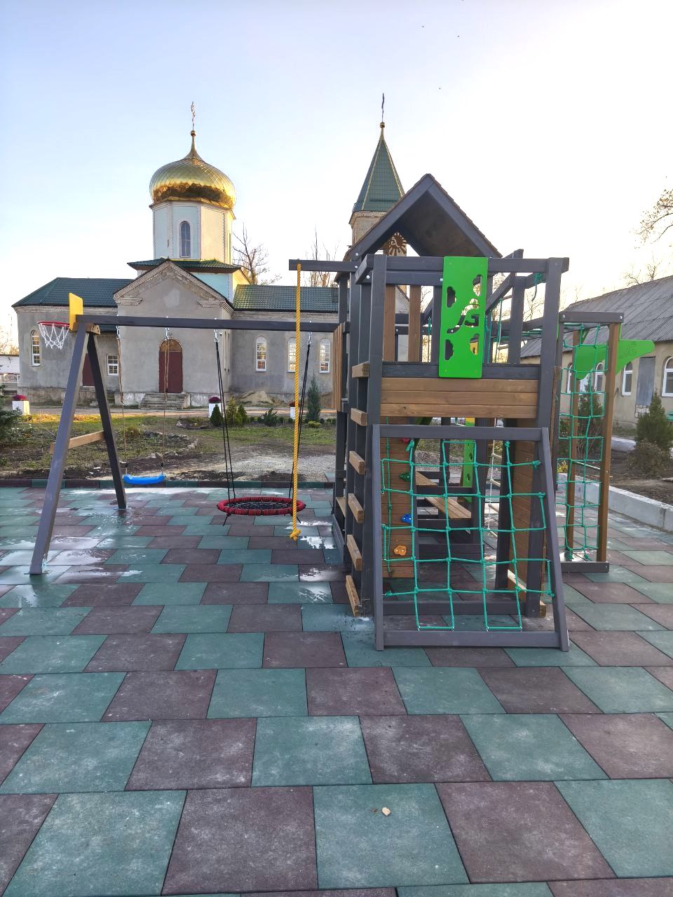 Усилиями прихода Благовещенского храма села Степановское приобретена и установлена детская площадка для Христорождественского храма села Макеевка ДНР.
