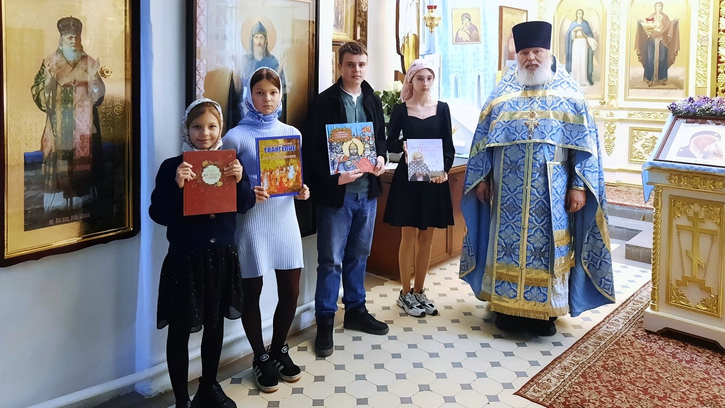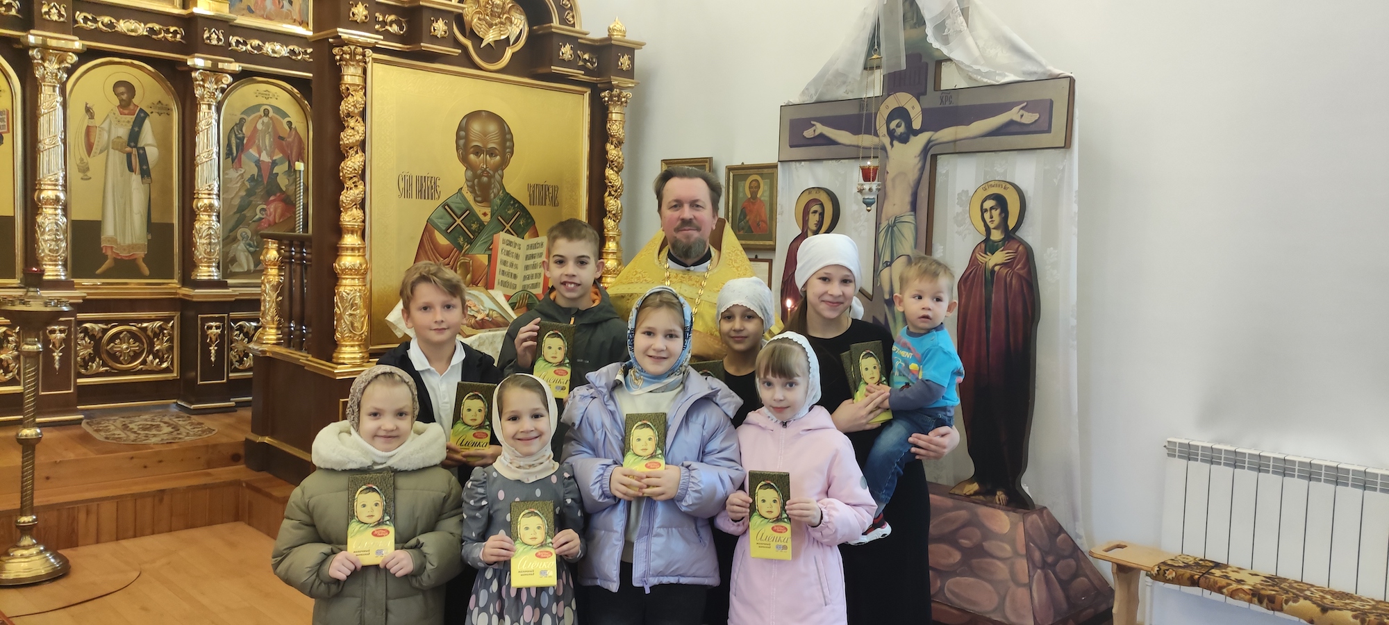 В Преображенском храме посёлка Рылеево настоятель протоиерей Димитрий Говоров вручил юным прихожанам сладкие подарки.