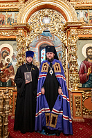 Затем архиепископ Аксий вручил настоятелю Казанского храма протоиерею Павлу Судареву орден преподобного Серафима Саровского III степени, а клирику храма иерею Андрею Кроликову – Патриаршую грамоту.