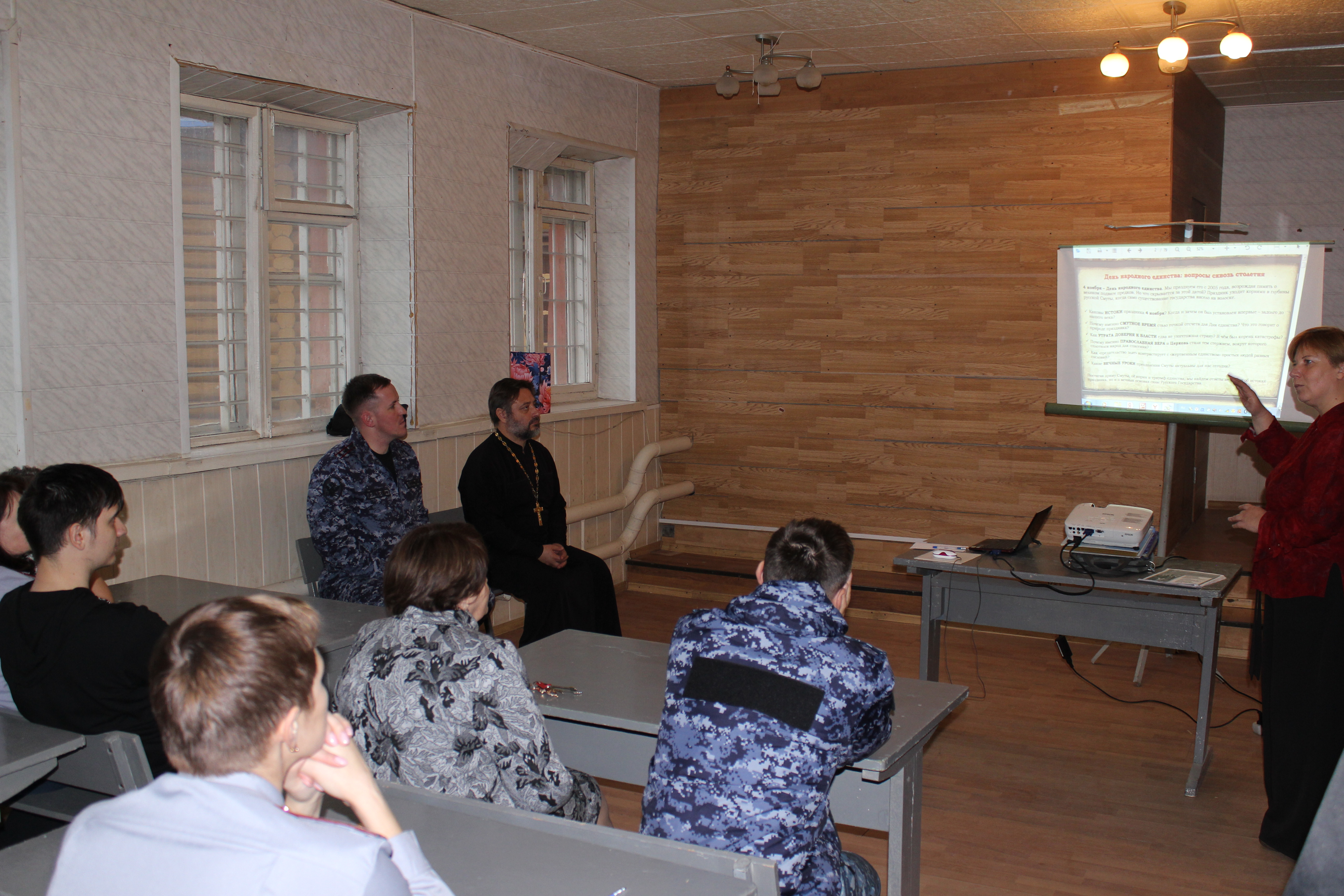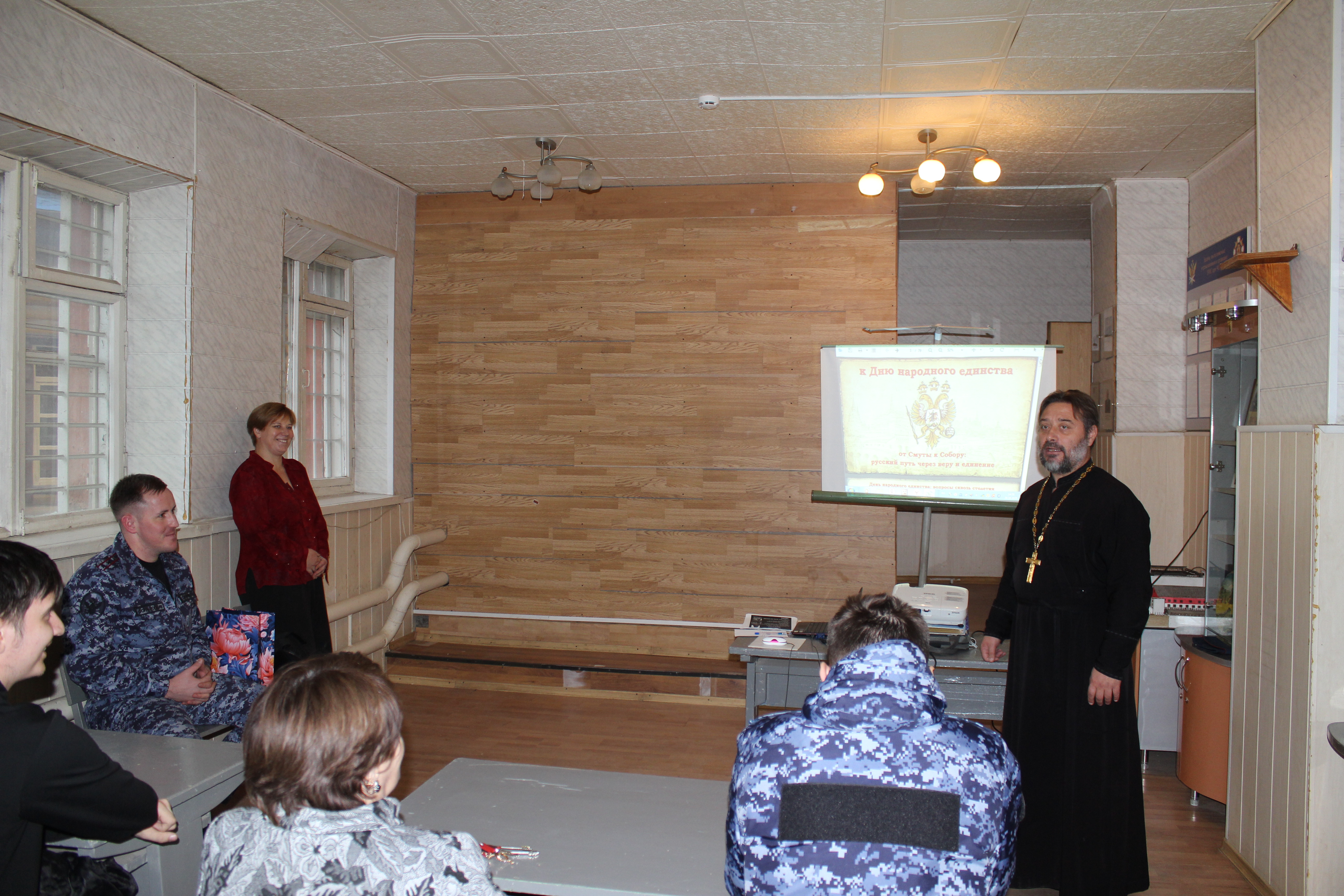 28 октября 2025 года помощник начальника СИЗО-7 г. Егорьевска по работе с верующими иерей Роман Теребилкин провел занятия с коллективом учреждения. На встрече также присутствовал ВРИО начальника учреждения майор в/с Трофимов С.В. Первое занятие прошло в рамках Недели межрелигиозного диалога. Основной темой обсуждения стали четыре традиционные религии России. Второе занятие было посвящено предстоящему государственному празднику - Дню народного единства. В ходе обсуждения были рассмотрены исторические, политические, экономические и социальные аспекты переломных событий русской истории конца 16 - начала 17 вв., а также роль православной веры для сохранения единства, свободы и независимости России. По итогам занятия участникам были предложены интеллектуальные задания, с которыми все успешно справились. Завершилась встреча вручением памятных сувениров к празднику.