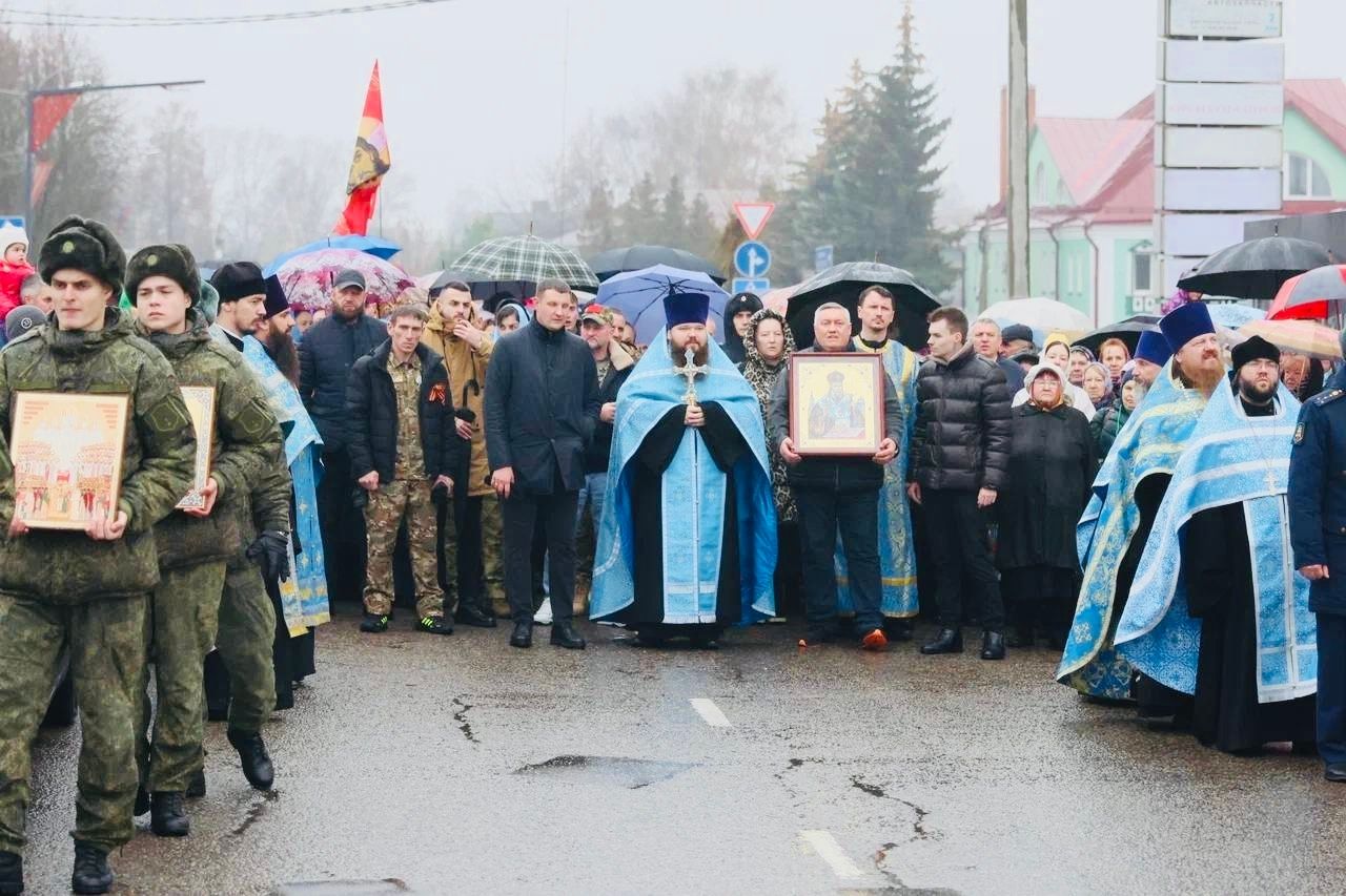 Председатель совета депутатов Павлово-Посадского городского округа Р. И. Тикунов нёс церковный фонарь, командиры воинских подразделений – запрестольные образа.
