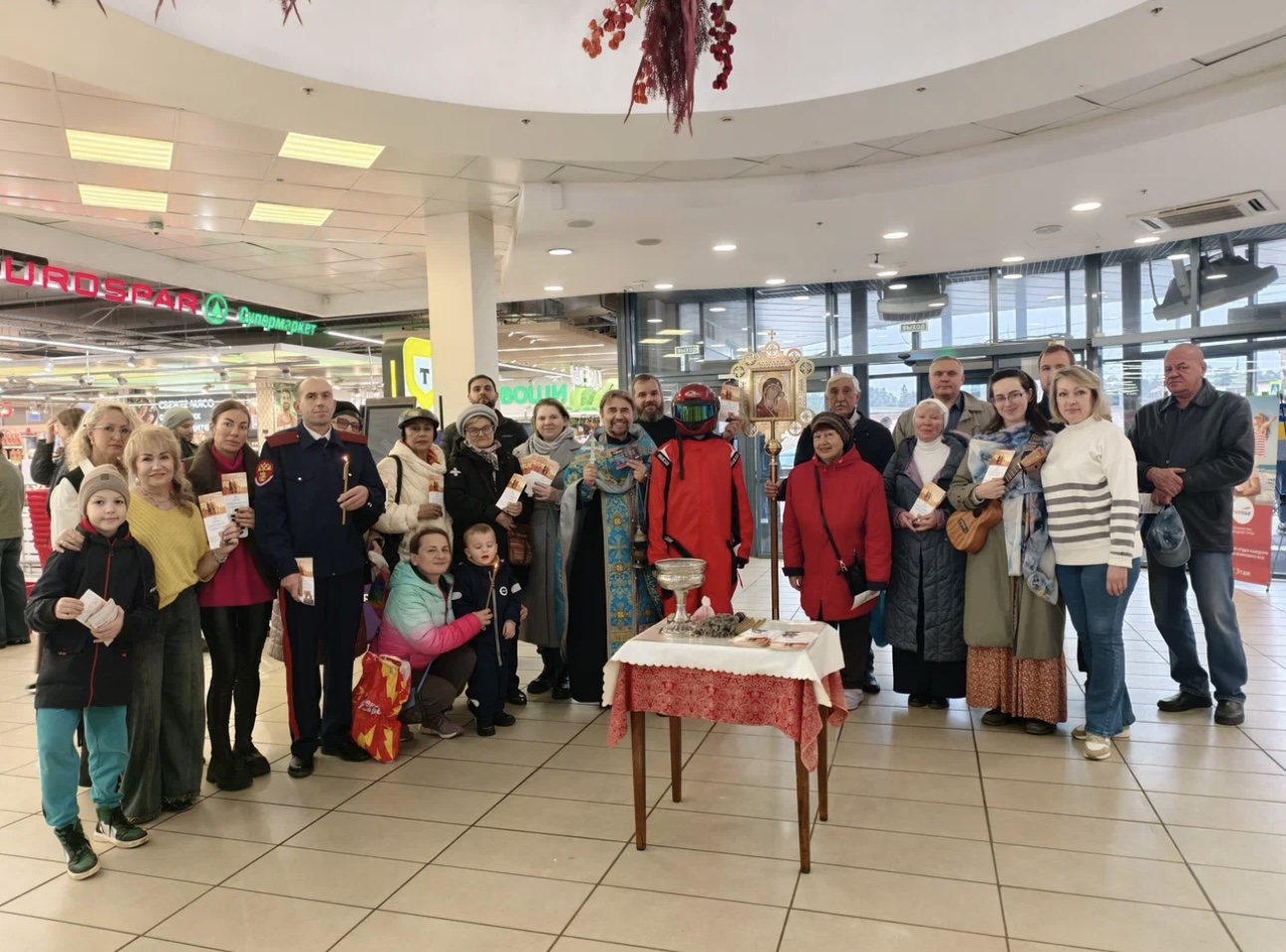 3 ноября в торговом центре «Океан» в г. Жуковский состоялась миссионерская акция в период празднования дня Казанской иконы Божией матери и дня народного единства. Эту акцию провели клирик Пантелеимоновского храма протоиерей Александр Лыков и сотрудники прихода. По окончании краткого молебна, совершённого отцом Александром при участии певчих храма , посетителям и сотрудникам торгового центра были розданы красочные буклеты с описанием истории праздника и событий из истории нашей страны. Певчая Ольга Жмакина встречала входящих в торговый центр пением праздничных песен под аккомпанемент укулеле. Всех желающих отец Александр окропил святой водой.