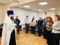 Отец Александр обратился к коллективу учреждения с пастырским словом и преподнёс директору Т. Е. Андрюхиной в благословение Нерукотворный Образ Спасителя.
