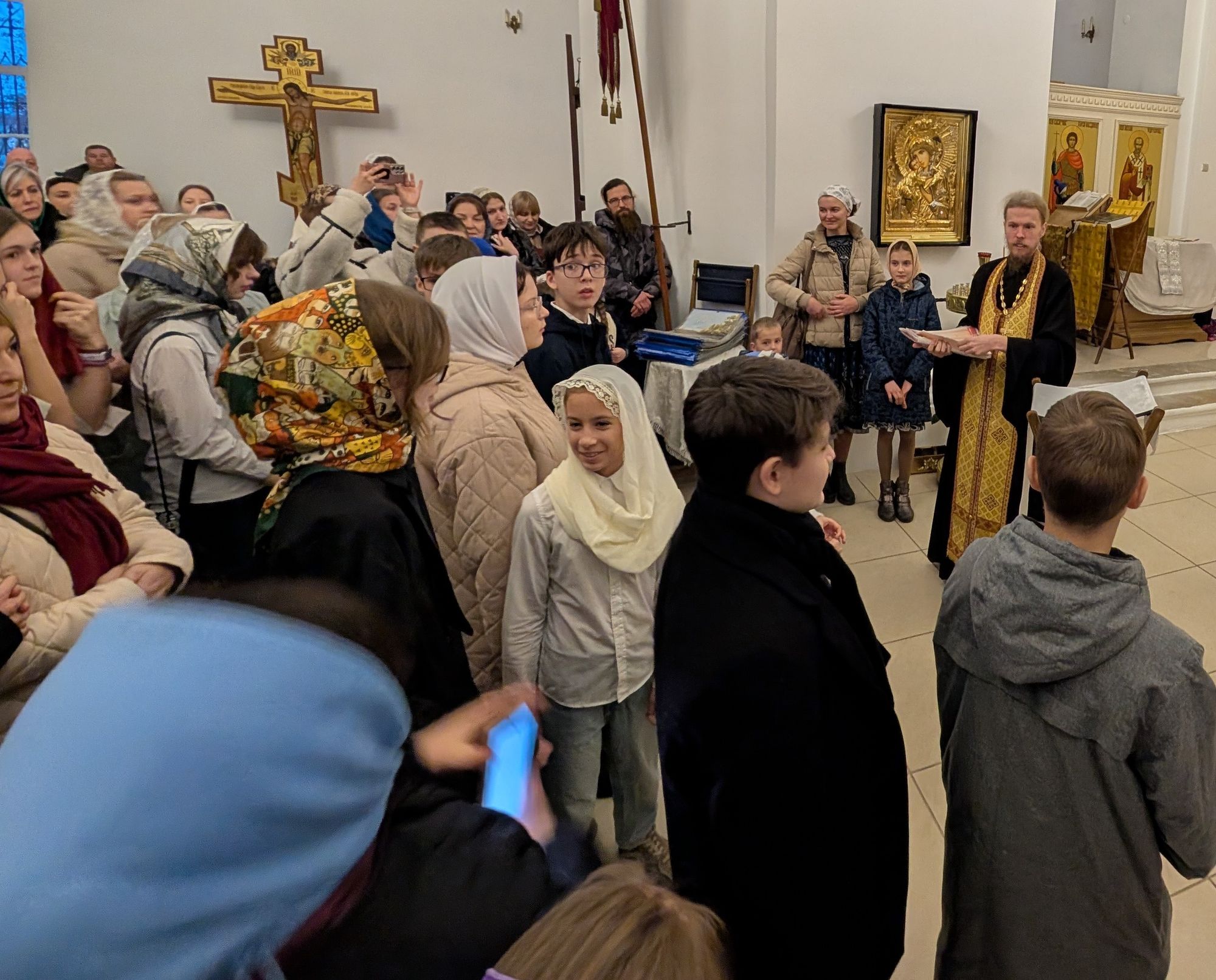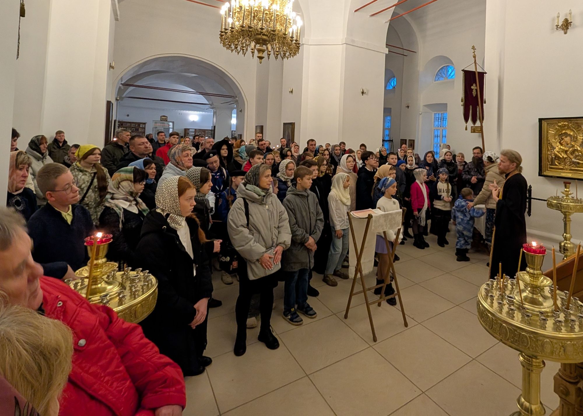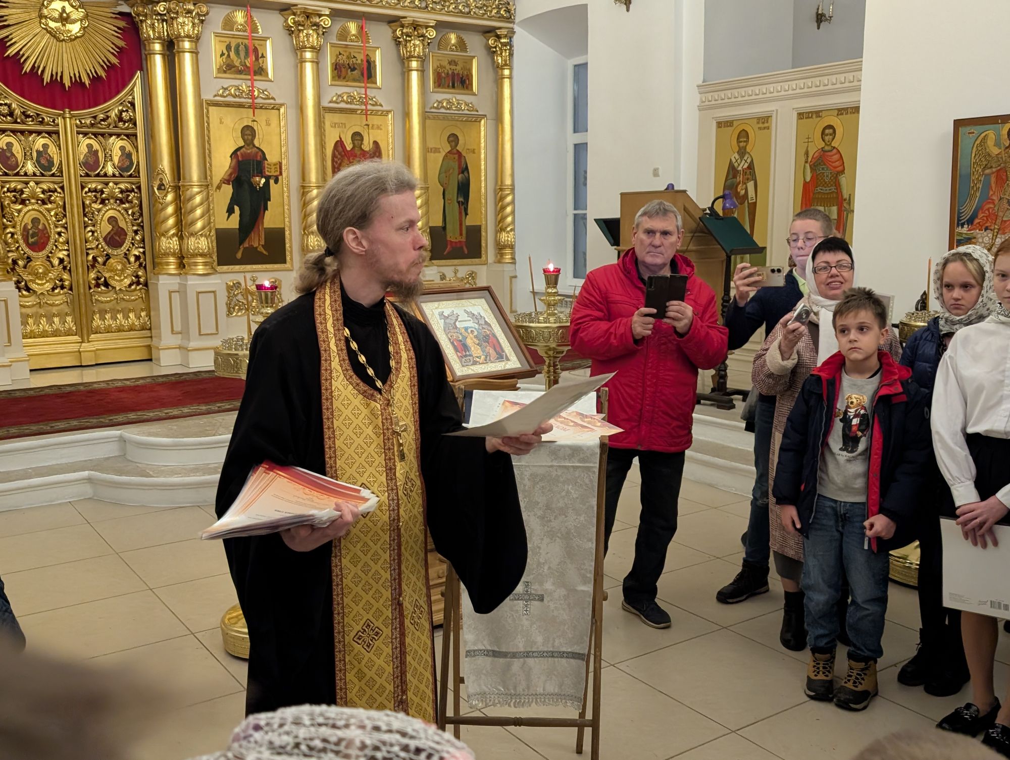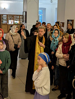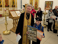 Началось мероприятие с краткого молебна, который совершил ответственный за религиозное образование и катехизацию иерей Димитрий Шаповалов. Затем отец Димитрий провел для собравшихся небольшую экскурсию по храму и рассказал о церковном искусстве и творчестве.