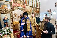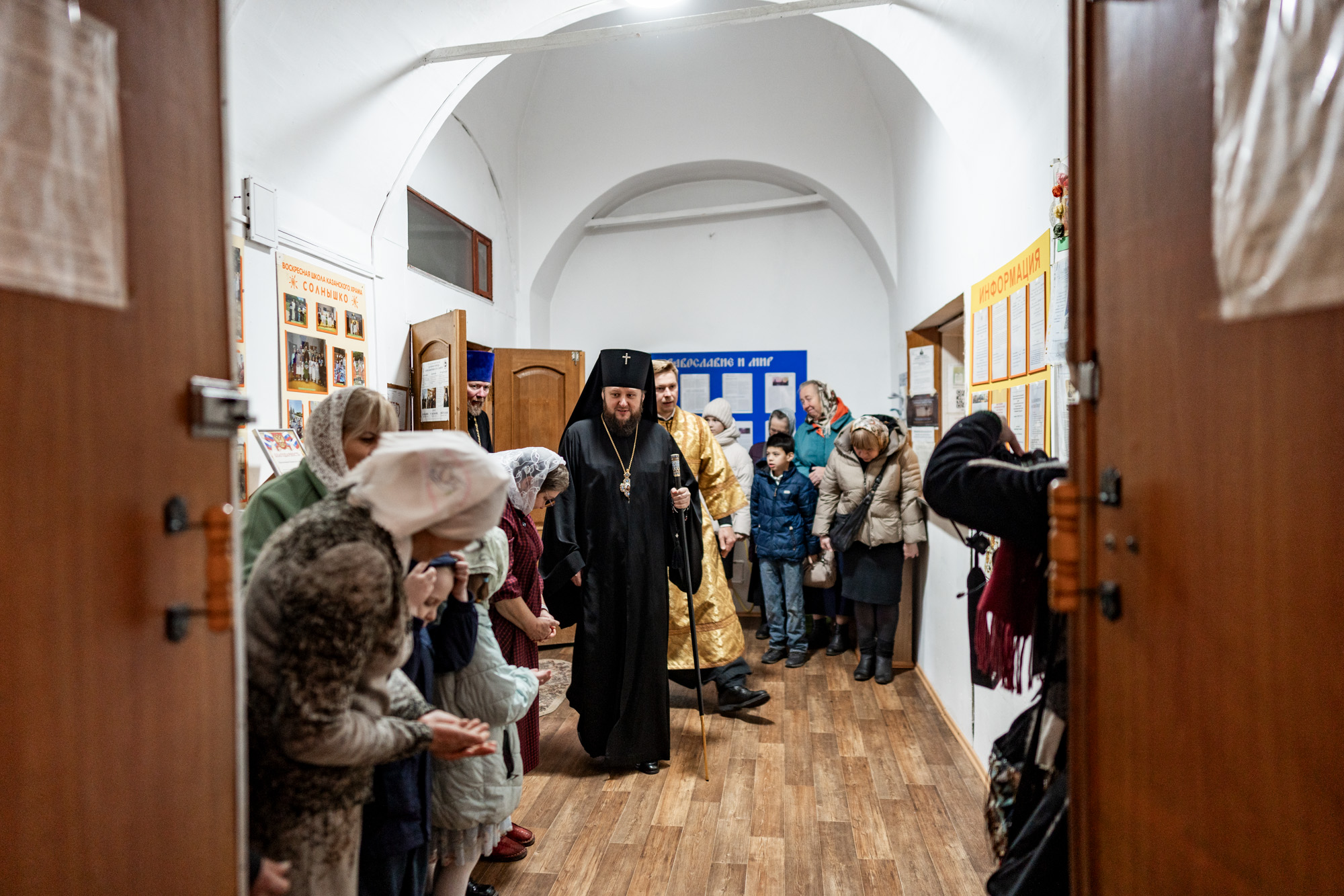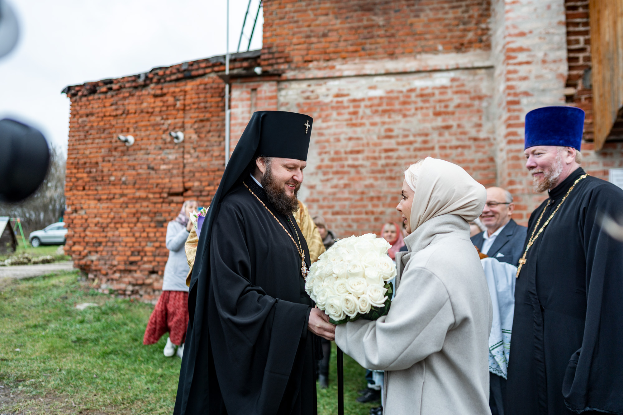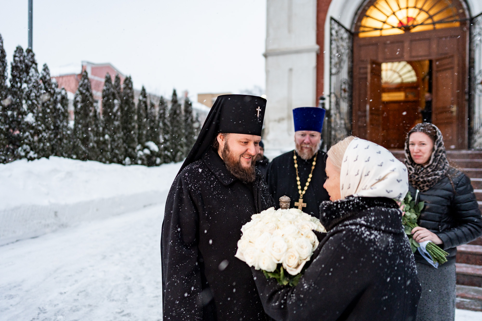 У храма владыку встретили заместитель главы г.о. Серпухов О.А. Лебедева, благочинный Серпуховского церковного округа иерей Дионисий Коськин, настоятель Казанского храма иерей Валерий Гололобов и учащиеся воскресной школы Казанского храма.