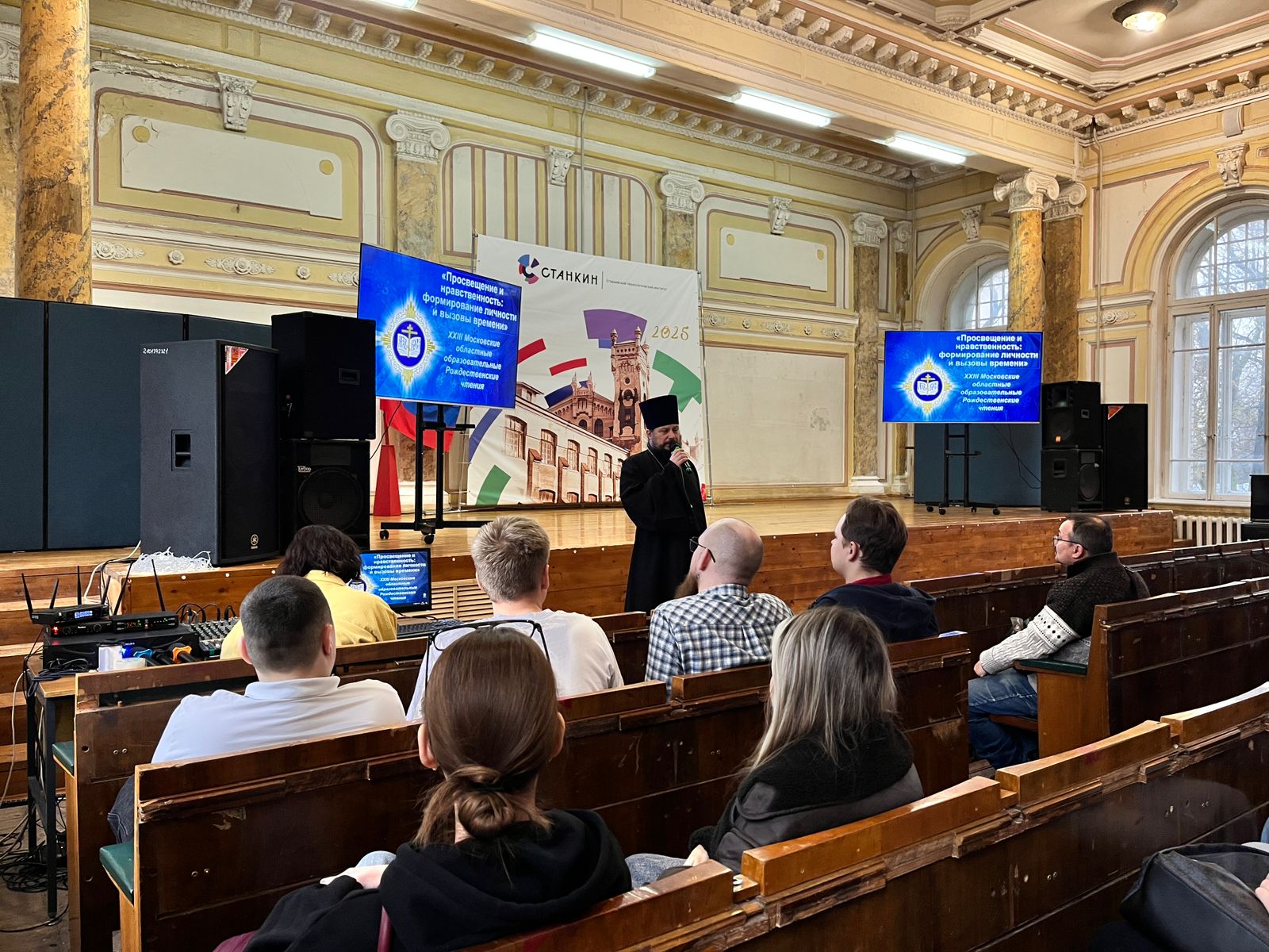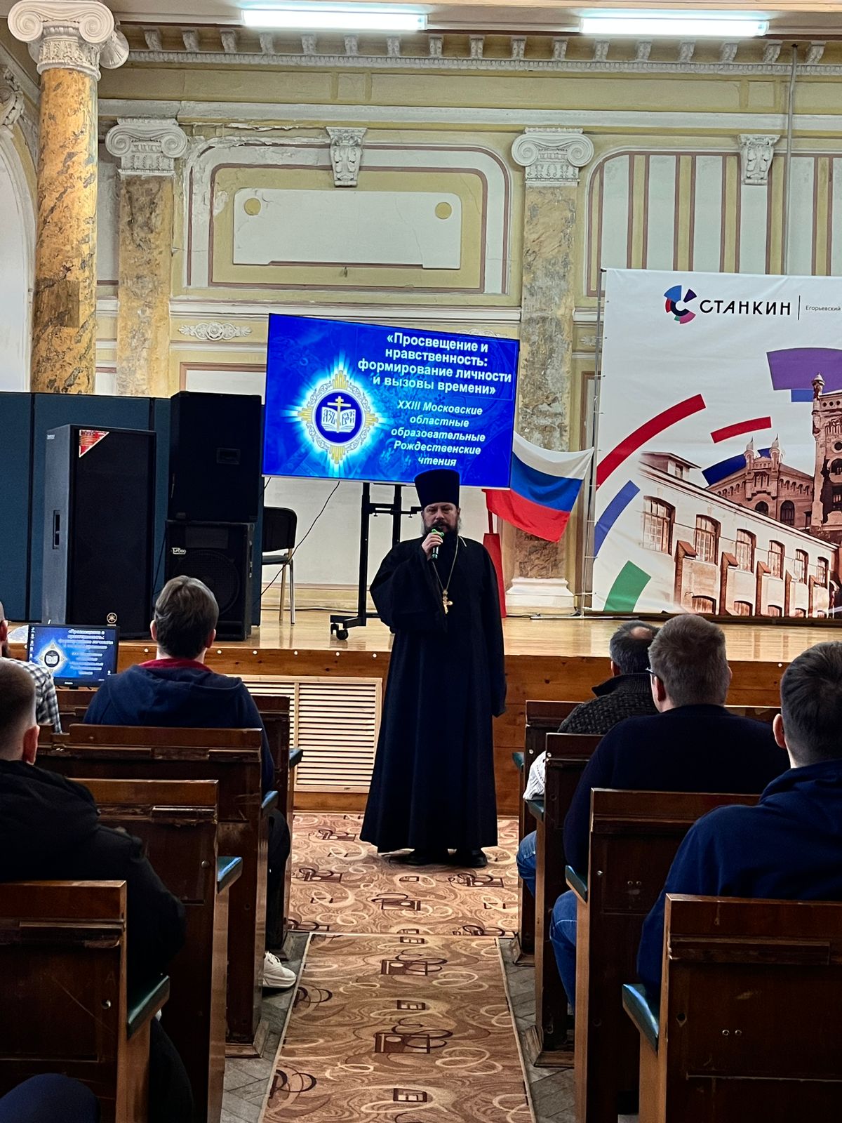 13 ноября, в рамках XXIII Московских областных образовательных Рождественских чтений, состоялась встреча со студентами "Егорьевского технологического института "Станкин". Настоятель Никольского храма с. Николо-Крутины протоиерей Роман Аксенов рассказал учащимся о значении образа Божия в человеке, о воспитании в себе высокого нравственного начала, значении веры в формировании личности, а также ответил на вопросы студентов и преподавателей.