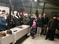 Затем участники посетили выставку «Значение подвига воинов 1-й Ударной армии. Лаврские фронтовики», организованную в воинской палатке на территории Сергиевского храма. На выставке участники прослушали рассказ о подвиге воинов 1-й Ударной армии, о Лаврских фронтовиках, о заступничестве преподобного Сергия Радонежского за наше Отечество в разное военное время и его роли в Победе во время Великой Отечественной войны. На выставке были также представлены раскопанные поисковым отрядом «Память народа» артефакты времён Великой Отечественной войны.