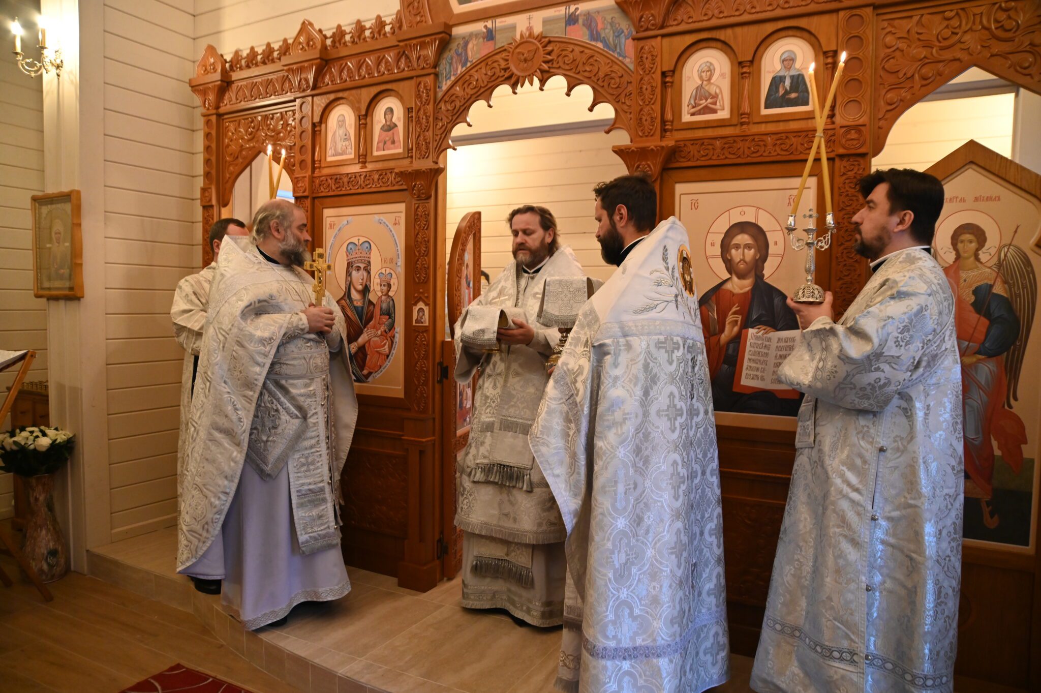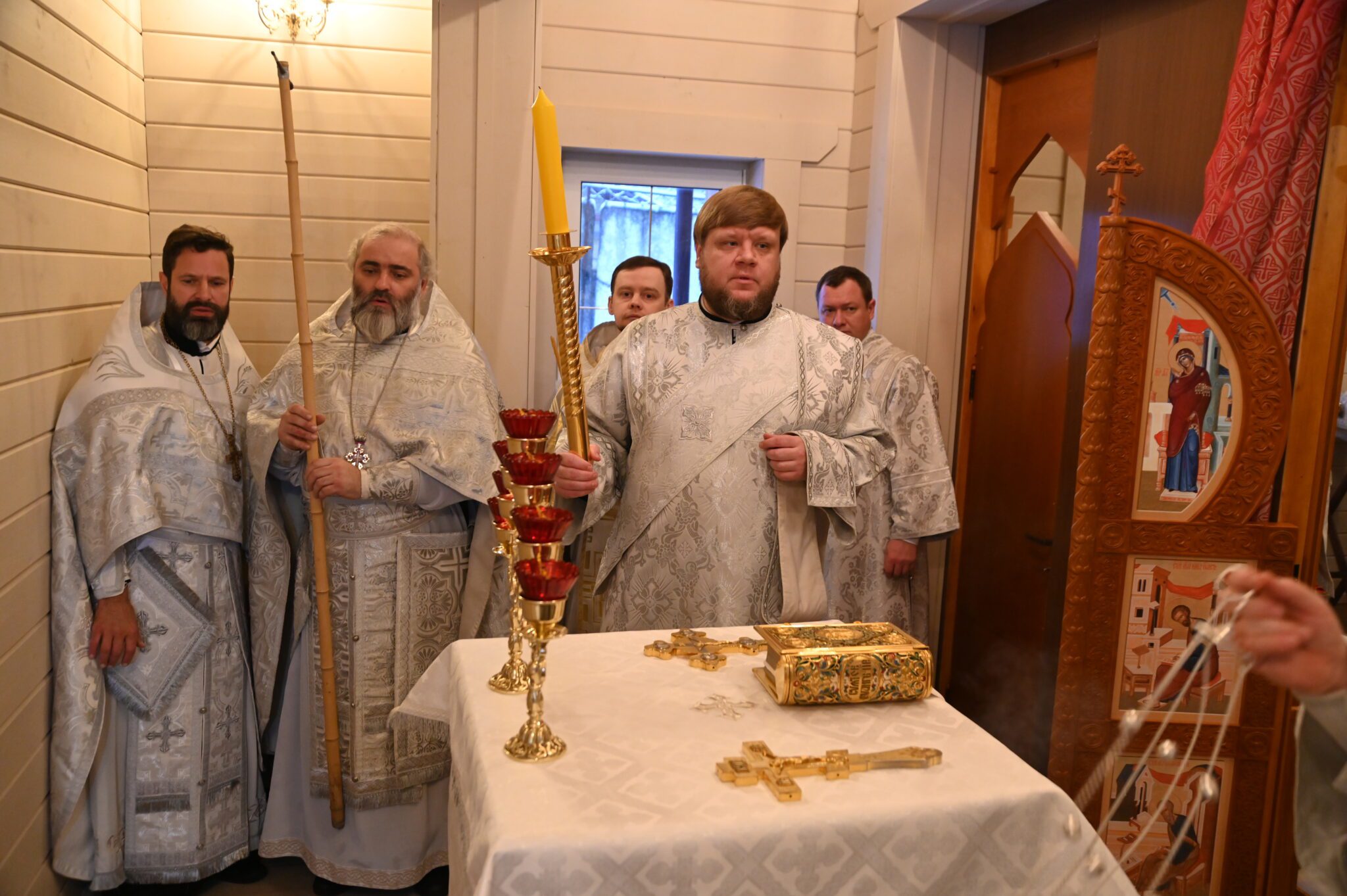 Его Высокопреосвященству сослужили благочинный Можайского церковного округа священник Иоанн Лобода, председатель Комиссии по тюремному служению Одинцовской епархии, помощник начальника ГУФСИН по организации работы с верующими, председатель Межъепархиального отдела по тюремному служению Московской митрополии священник Михаил Куземка, благочинный Яхромского церковного округа священник Сергий Бернацкий, духовник ИК-5 священник Роман Томилов и духовенство Одинцовской епархии.