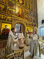 По окончании Литургии на могиле схиархимандрита Пантелеимона, погребенного в ограде Благовещенского храма, была совершена панихида.