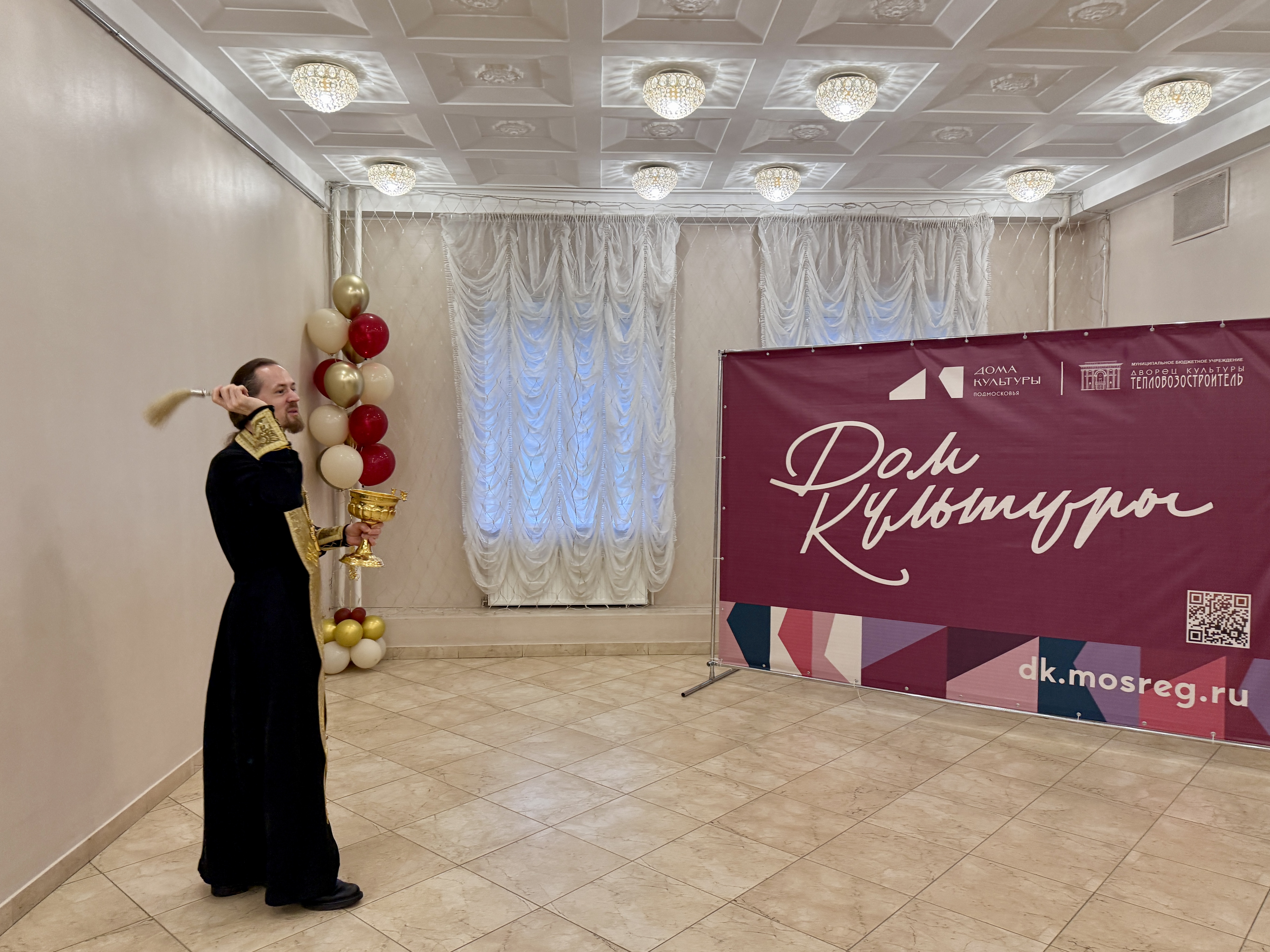 18 ноября 2025 года благочинный 1-го Коломенского благочиннического округа, настоятель Троицкого храма г. Коломна протоиерей Алексий Виноградов и председатель Отдела по миссионерской работе и делам молодёжи Коломенской епархии, настоятель Крестовоздвиженского храма г. Коломна иерей Иоанн Бакушкин совершили освящение помещений Дворца культуры «Тепловозостроитель» - одного ключевых культурных центров городского округа Коломна.