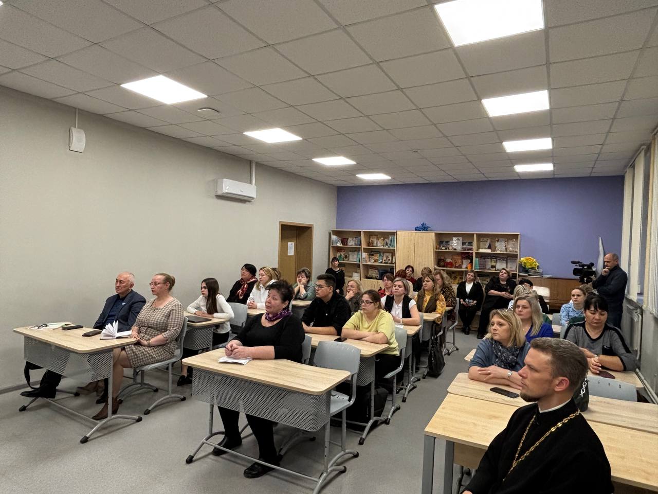 В начале встречи слово было предоставлено настоятелю Тихоновского храма г. Клина протоиерею Анатолию Фролову. На открытии выставки настоятель Троицкого храма с. Захарово игумен Тихон (Полянский) провёл беседу с гостями. Среди слушателей были педагоги истории и основ православной культуры, а также краеведы г. Клина.