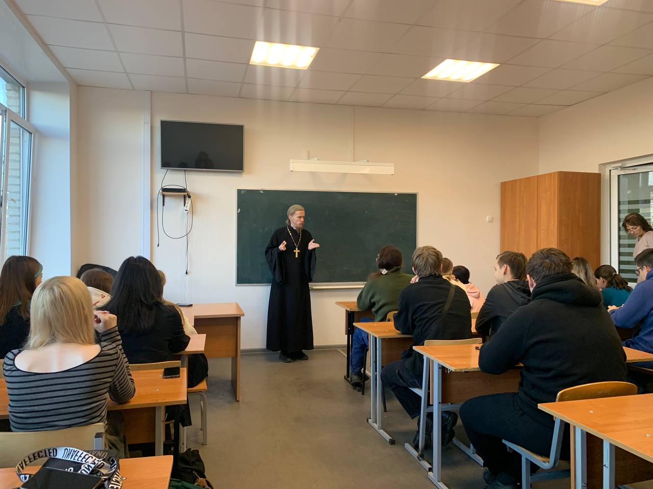19 ноября ответственный за религиозное образование и катехизацию в Коломенских благочиннических округах иерей Димитрий Шаповалов посетил Коломенский аграрный колледж имени Н.Т. Козлова. Отец Димитрий встретился со студентами первого курса и провел пару, на которой были подняты темы смысла жизни, любви, духовной жизни и взаимоотношений с Богом.