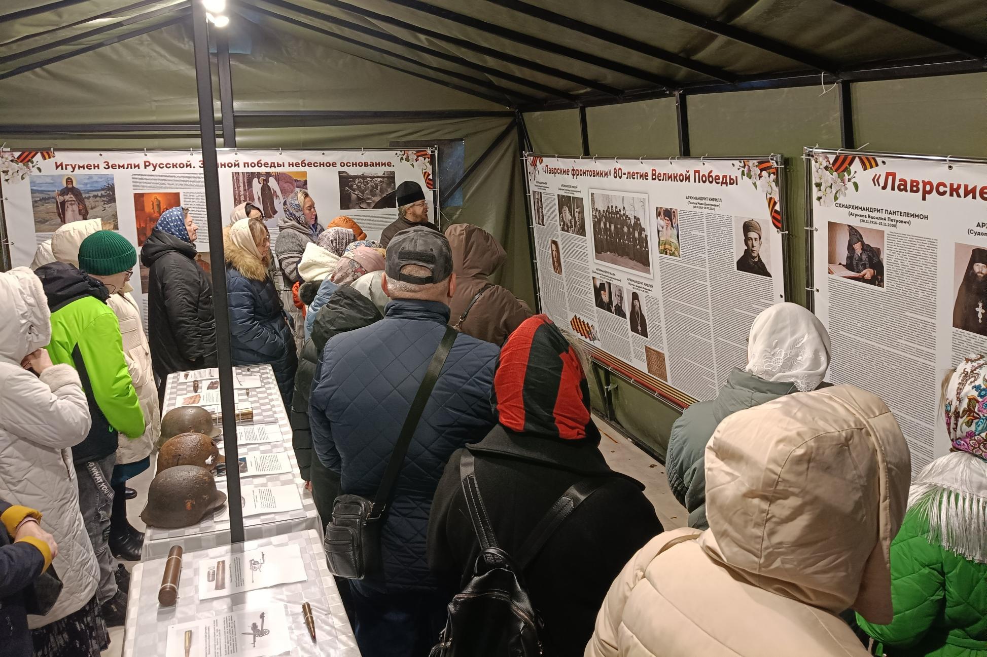 Затем участники посетили выставку «Значение подвига воинов 1-й Ударной армии. Лаврские фронтовики», организованную в воинской палатке на территории Сергиевского храма. На выставке участники прослушали рассказ о подвиге воинов 1-й Ударной армии, о насельниках Лавры из числа фронтовиков, о заступничестве преподобного Сергия Радонежского за наше Отечество в разное военное время и его роли в Победе во время Великой Отечественной войны. На выставке были также представлены артефакты этой войны, раскопанные поисковым отрядом «Память народа».