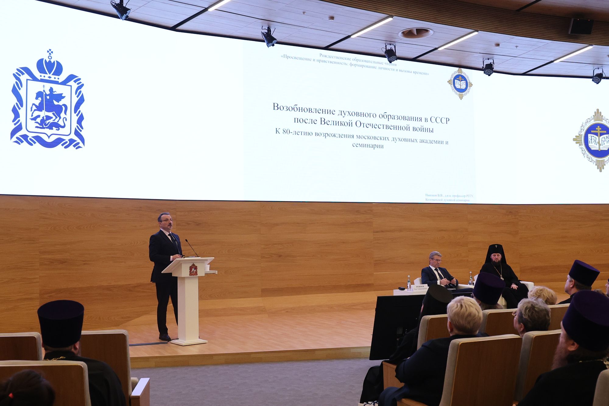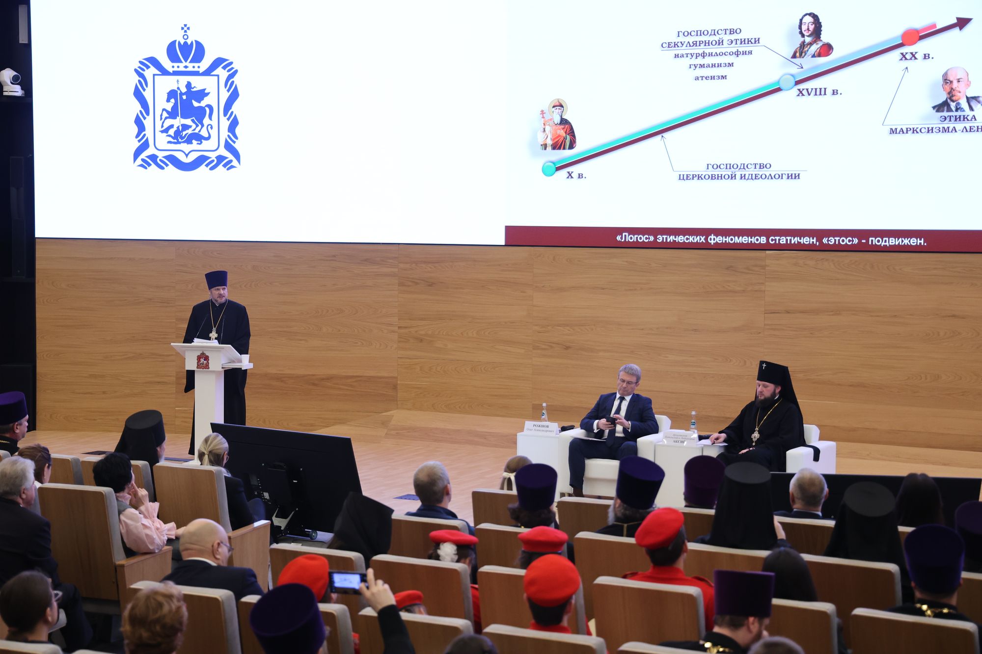 протоиерей Сергий Якимов, председатель Межъепархиального отдела по координации духовно-просветительской, образовательной деятельности Московской митрополии, с докладом «Указ Президента Российской Федерации № 809 и традиции русской этической мысли»;