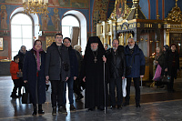 По окончании Литургии отец благочинный поблагодарил владыку Николая за совершённое богослужение и преподнёс ему картину с изображением Богоявленского собора.