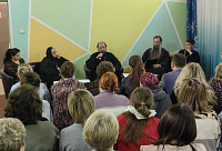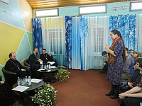 В рамках встречи архиепископ Аксий провёл с собравшимися беседу, посвящённую формированию личности ребёнка в современном мире. Владыка поделился размышлениями о духовно-нравственных ориентирах, необходимых молодым людям в эпоху информационного изобилия и быстро меняющихся ценностей. Он подчеркнул важность совместных усилий семьи и учебного заведения в создании здоровой нравственной среды для развития ребёнка. Отвечая на вопросы старшеклассников, владыка затронул темы выбора жизненного пути, личной ответственности, веры и поиска своего места в мире. Гости встречи получили объяснение сложных жизненных тем с православной точки зрения, а также услышали ответы на свои вопросы.