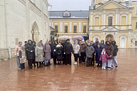 После чаепития паломники отправились в Свято-Троицкую Сергиеву лавру, посетили святые места, приняли участие в молебном пении и приложились к святым мощам преподобного Сергия Радонежского. По благословению епископа Кирилла опытные экскурсоводы провели благотворительную экскурсию «Воинская слава Троице-Сергиевой Лавры», которая раскрывает значение Троицкого монастыря и роль его насельников-фронтовиков в защите Отечества. Участники поездки помолились у могил лаврских фронтовиков архимандрита Кирилла (Павлова) и архимандрита Наума (Байбородина) и возложили цветы.