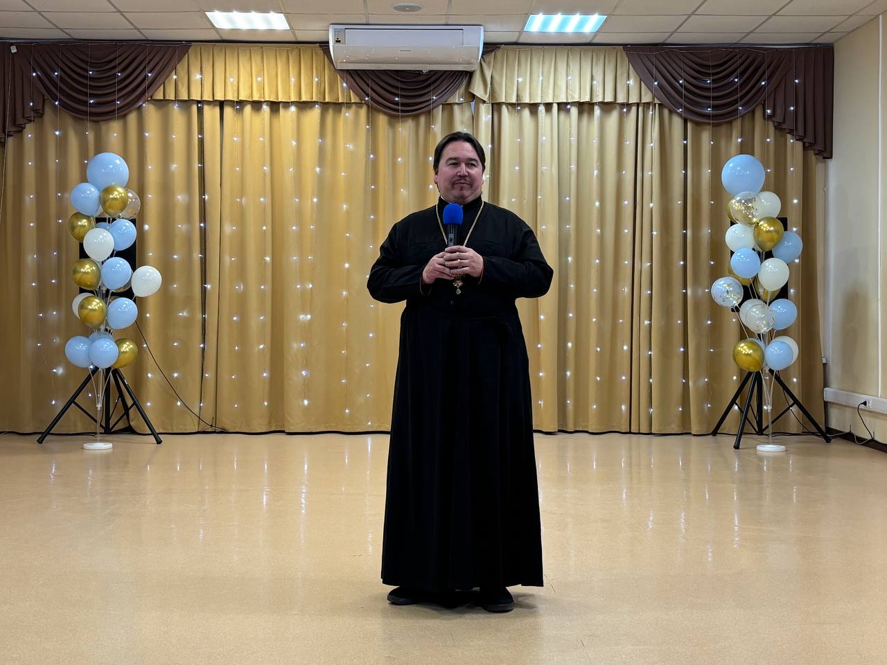 - священник Арсений Писаревский, ответственный отдела по социальному служению и благотворительности Озерского благочиния и настоятель Покровского храма села Сосновка, который поздравил участников концерта;