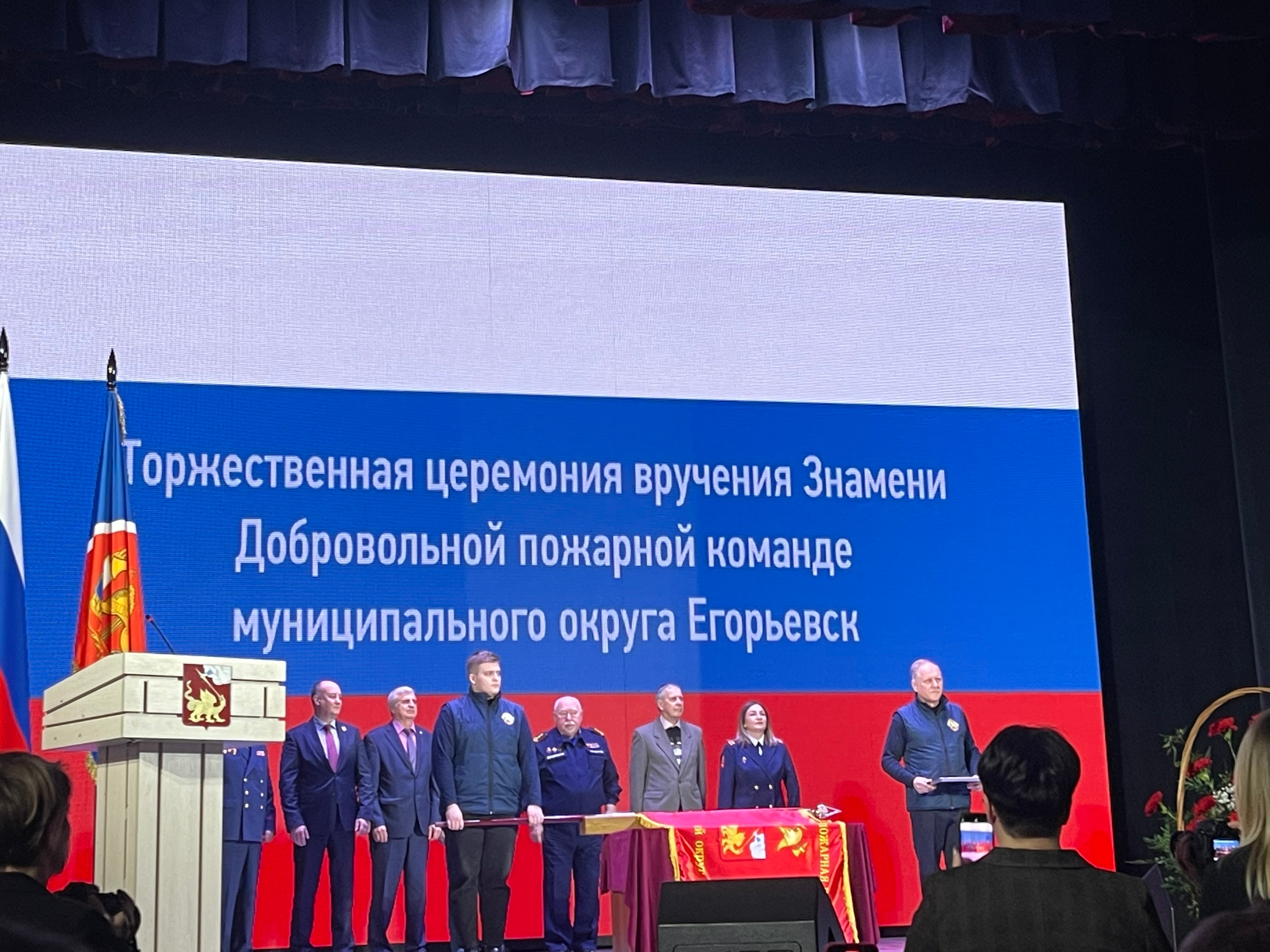 5 декабря 2025 года в связи с празднованием Дня добровольца (волонтёра) в Дворце Культуры имени Конина г. Егорьевск состоялась Торжественная церемония вручения Знамени Добровольной пожарной команде муниципального округа Егорьевск. Благочинный 2-ого Егорьевского благочиннического округа, настоятель Казанского храма г. Егорьевск иерей Сергий Ершов совершил освящение Знамени.