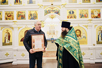 По окончании богослужения священник Александр Анохин передал начальнику управления по культуре, спорту и работе с молодёжью администрации Павлово-Посадского городского округа А. Н. Дяченко архиерейскую грамоту епископа Балашихинского и Орехово-Зуевского Николая.