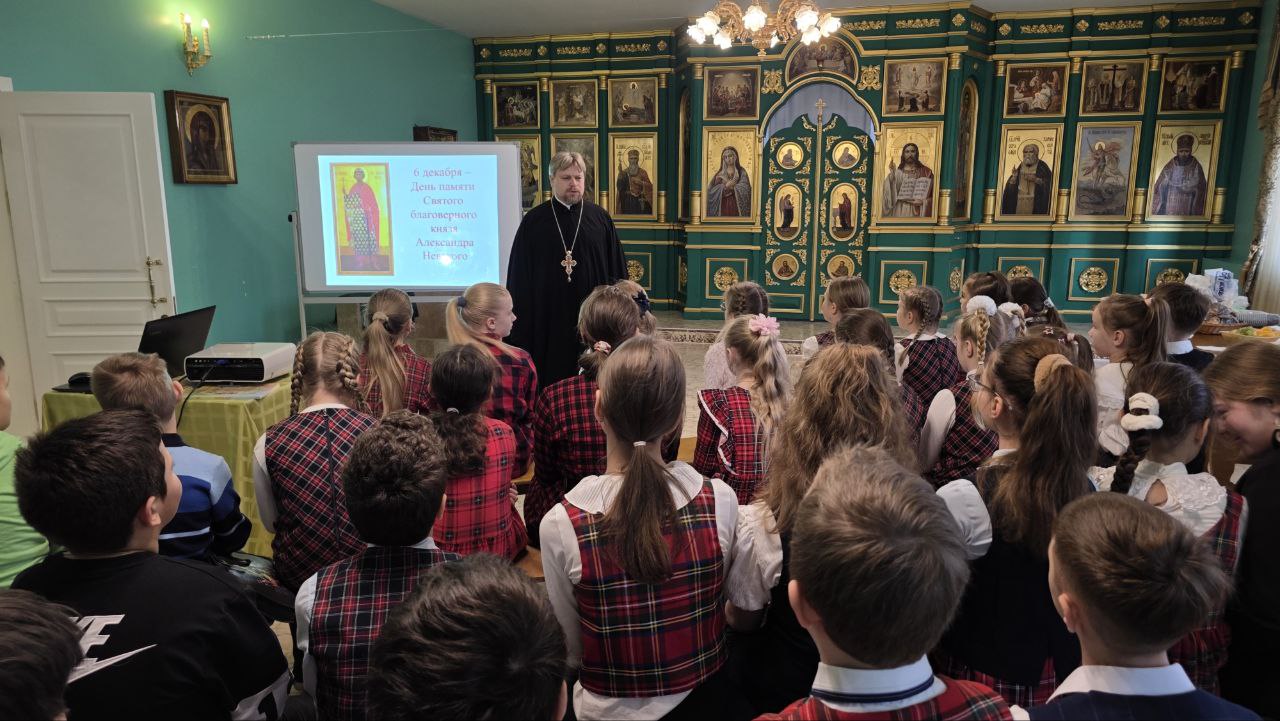 7 декабря в воскресной школе «Фавор» состоялось мероприятие, приуроченное ко дню памяти святого благоверного великого князя Александра Невского. С приветственным словом к присутствующим обратился настоятель Александро-Невского храма протоиерей Сергий Кожевников.Для родителей была организована экскурсия по Александро-Невскому храму.