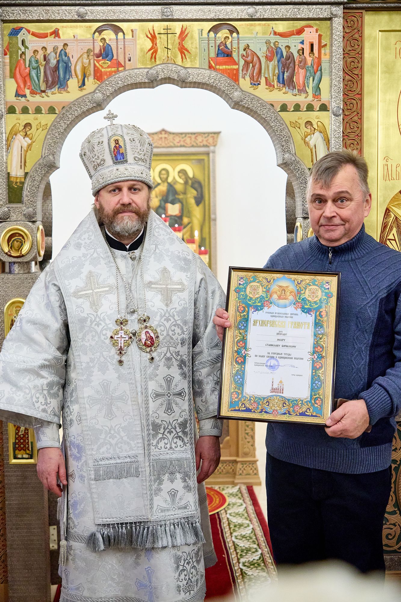 Многие благотворители, жители округа и прихожане, участвовавшие в строительстве нового храма, молились за богослужением.