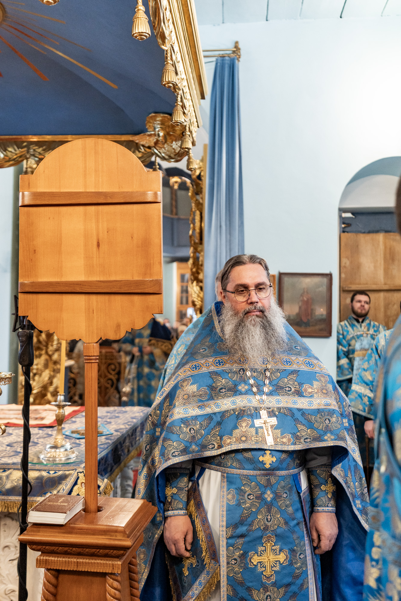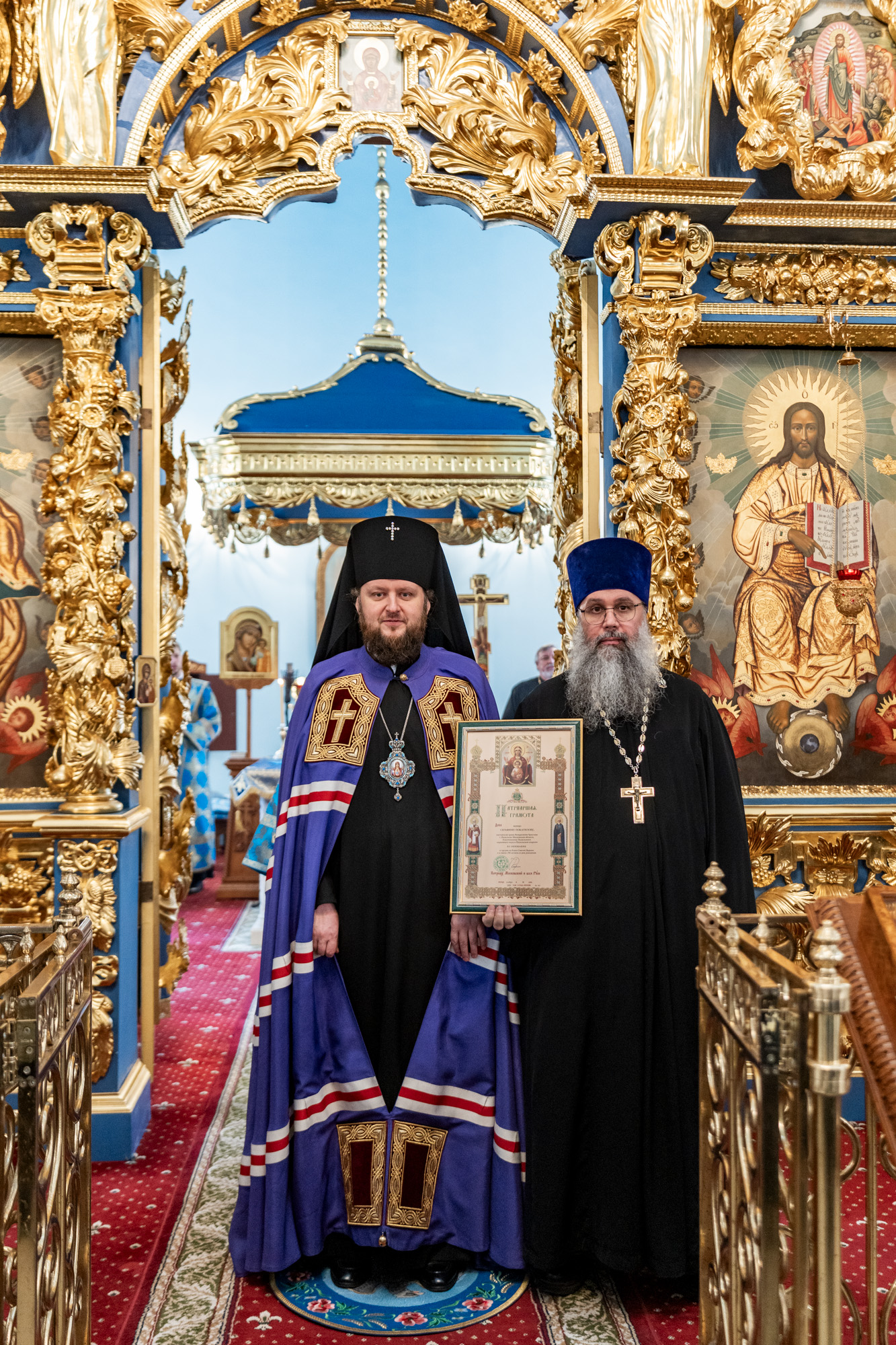 Во внимание к усердным трудам на благо Святой Церкви и в связи с 50-летием архиепископ Аксий вручил Патриаршую грамоту благочинному церквей Подольского округа иерею Серафиму Покатилову, а также поздравил настоятеля храма протоиерея Андрея Грицышина с 30-летием иерейской хиротонии. Отец Андрей преподнёс владыке список иконы Божией Матери «Неувядаемый Цвет».