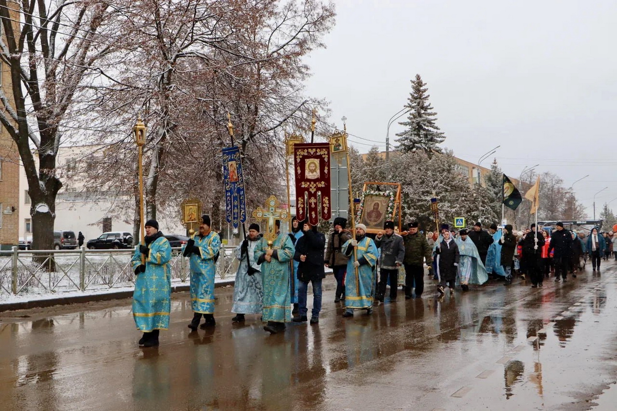 После Божественной Литургии на Братской могиле была отслужена панихида и возложены цветы, затем состоялся общегородской крестный ход и благодарственный молебен у мемориала павшим защитникам Серебряных Прудов в Великой Отечественной войне.