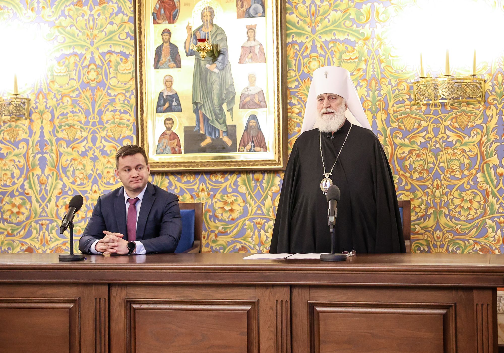 Перед началом заседания состоялось торжественное подписание Соглашения о сотрудничестве с Ассоциацией ветеранов СВО Московской области. Подписи под документом поставили митрополит Павел и председатель Ассоциации К. Лосунчуков. Этот шаг расширил круг организаций, участвующих в оказании комплексной поддержки участникам СВО.