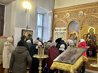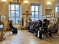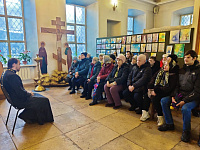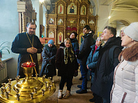Настоятель иерей Димитрий Варламов провел для гостей экскурсию по храму и беседу о молитве. В завершении беседы на молитвенную память настоятель подарил каждому икону апостола Иоанна Богослова.