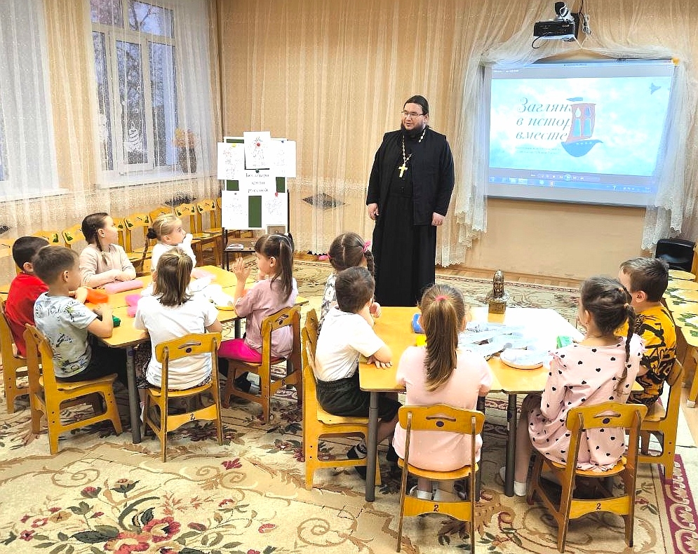 Занятие провели воспитатель И.Ю. Борисенко и настоятель Успенского собора г. Каширы иеромонах Александр (Волков).