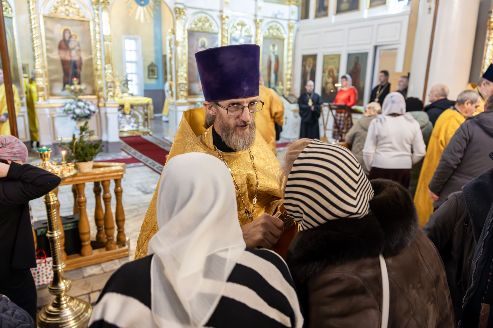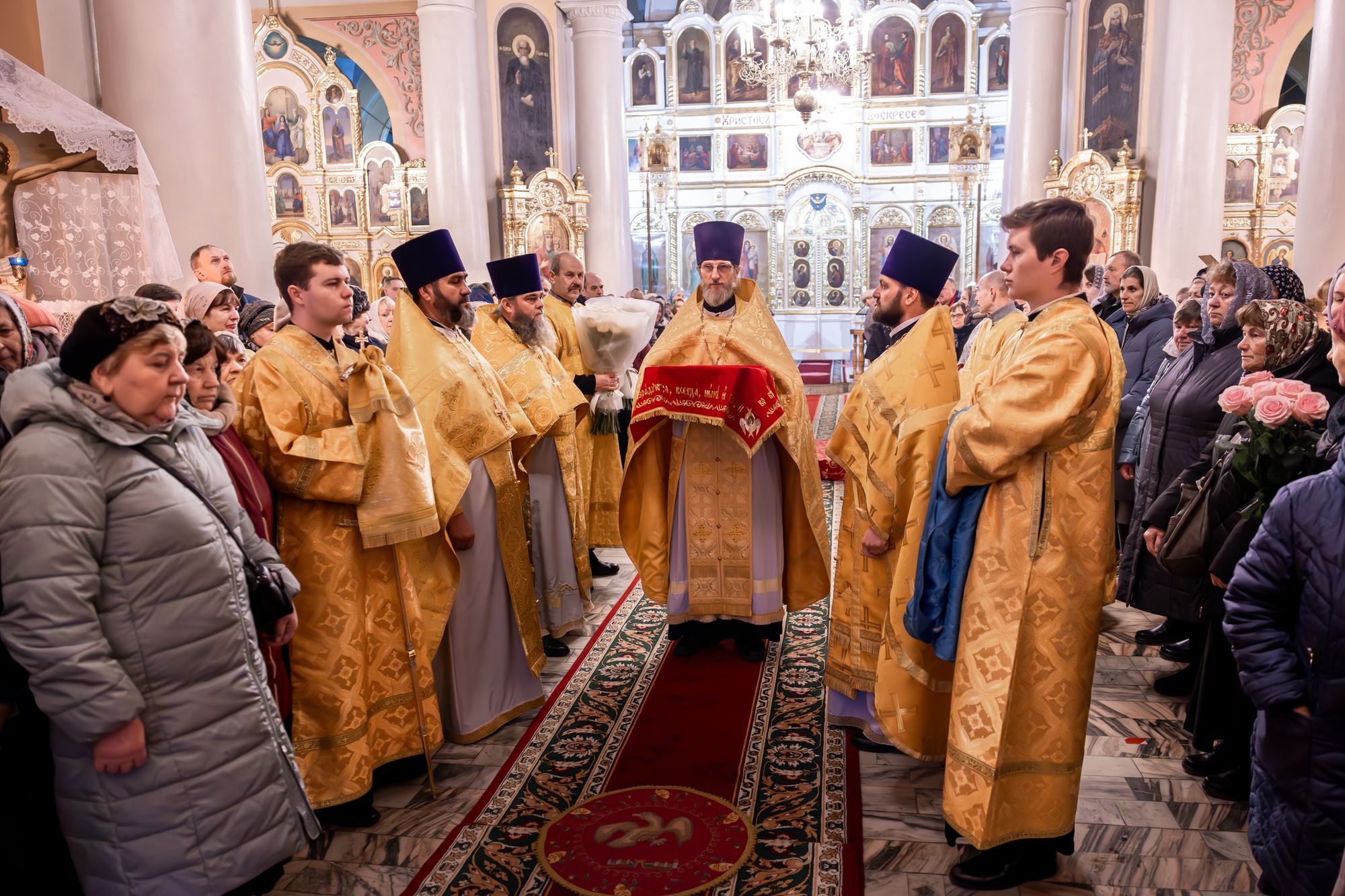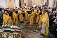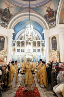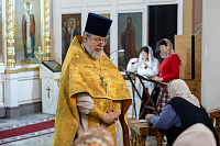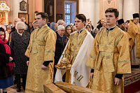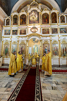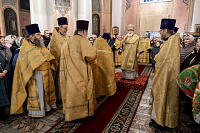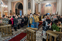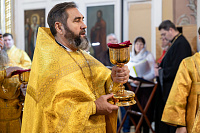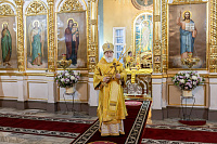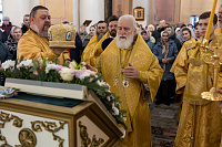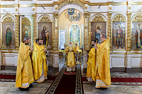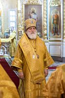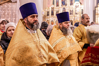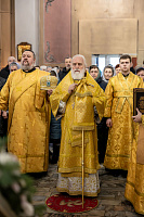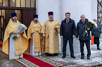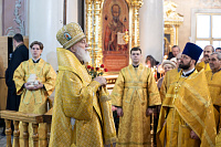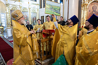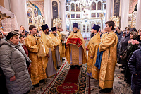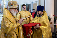 В завершение отец благочинный поблагодарил Владыку за совершённое богослужение и преподнёс памятные подарки.