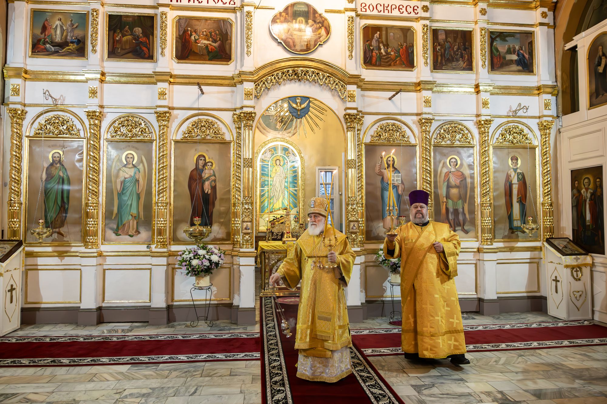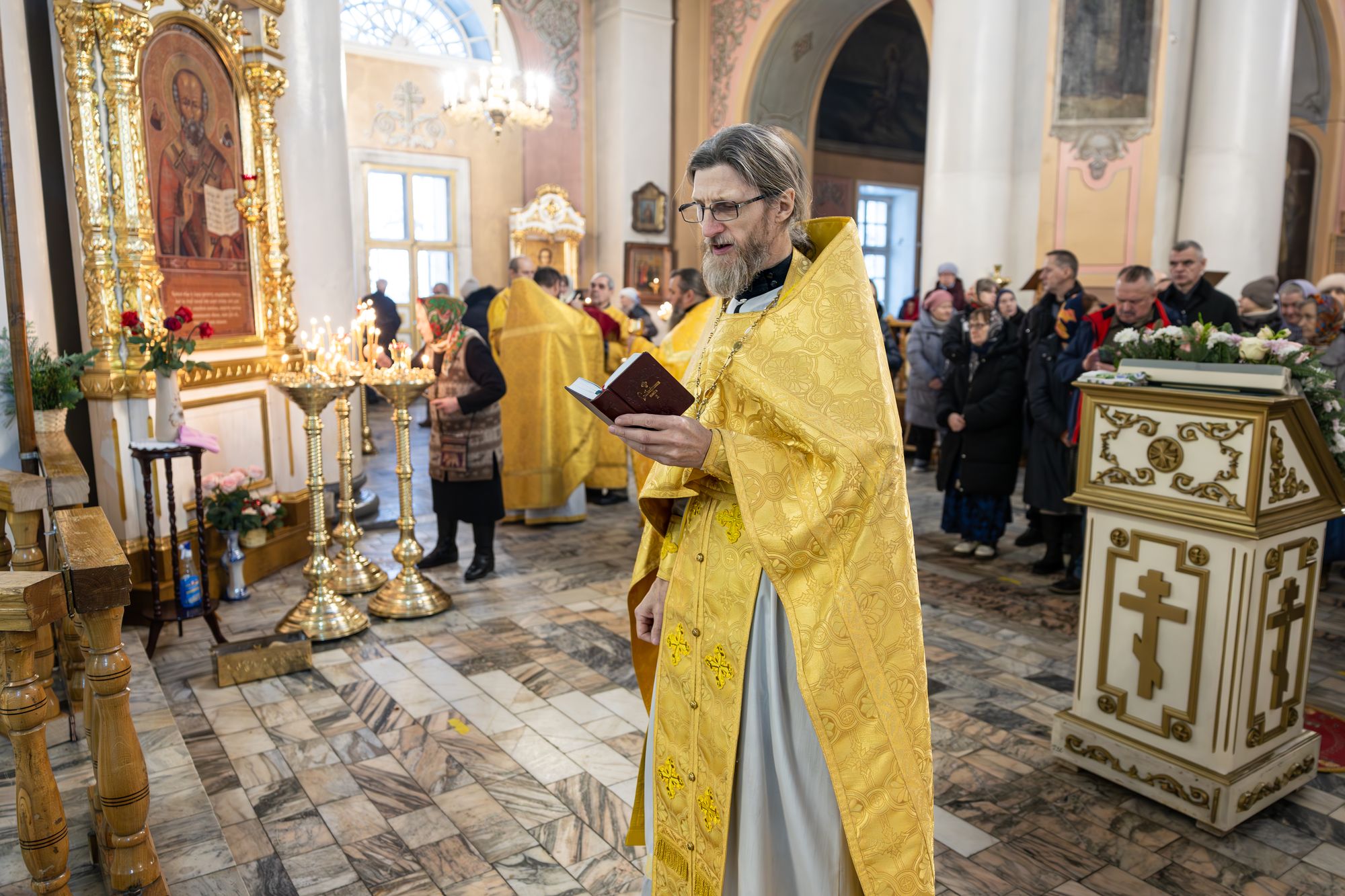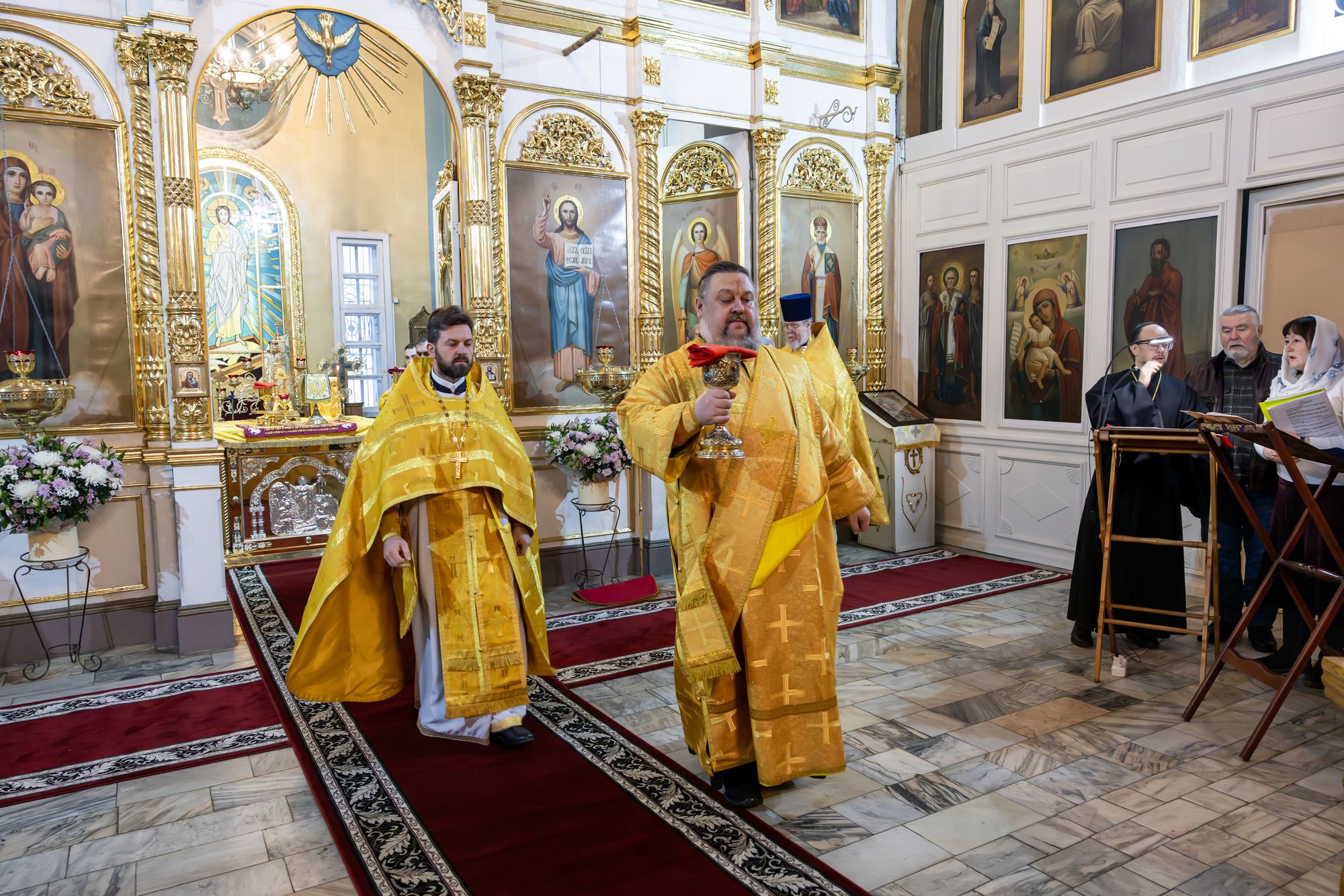 В завершение отец благочинный поблагодарил Владыку за совершённое богослужение и преподнёс памятные подарки.