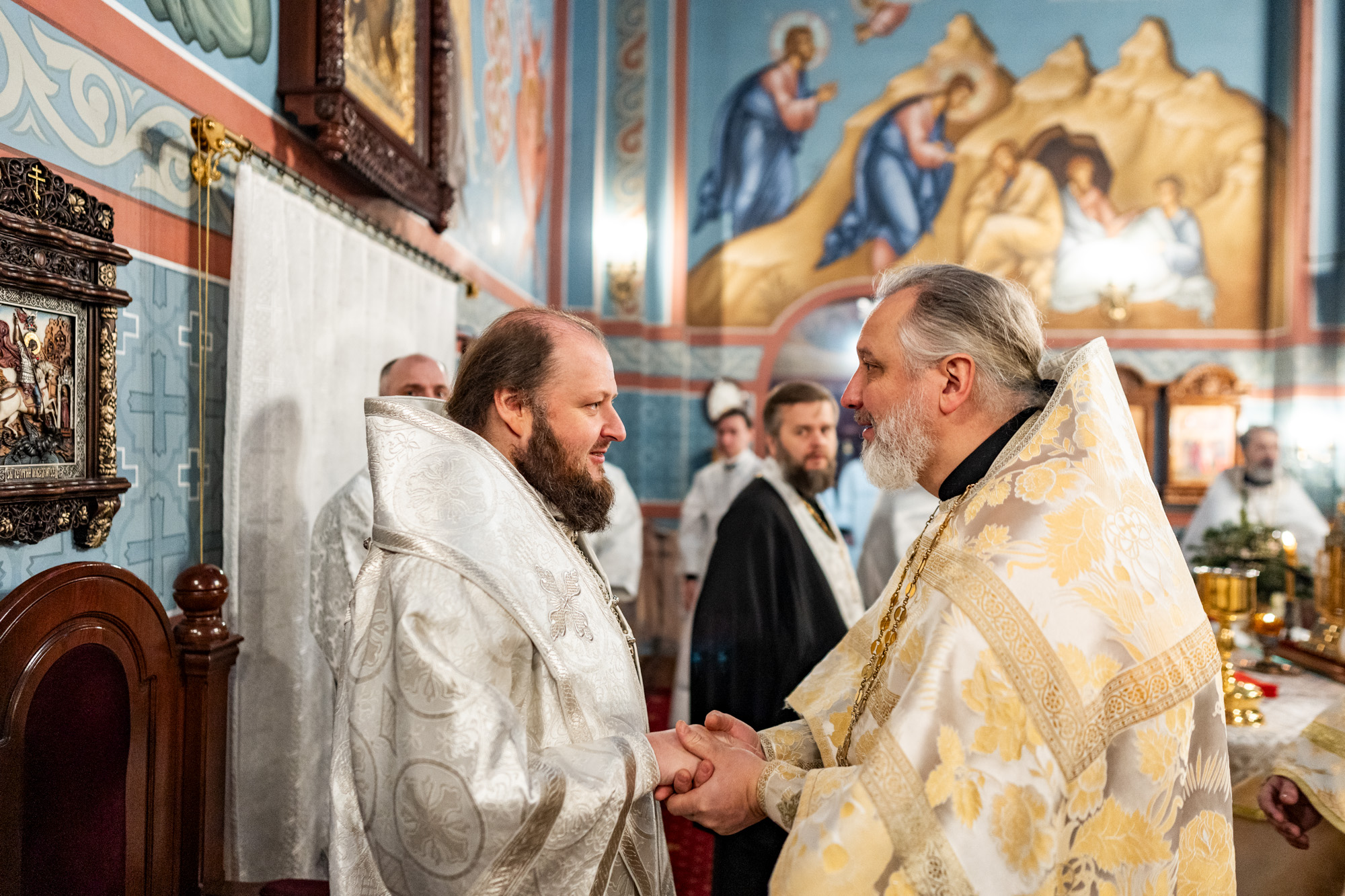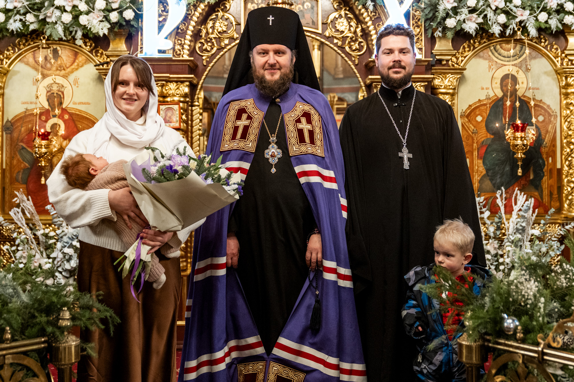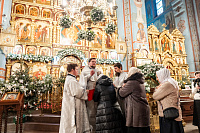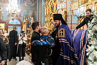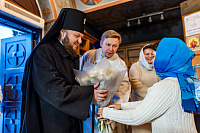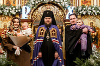 По окончании богослужения владыка поздравил клириков Подольской епархии, у которых в прошедшем году родились дети: иерея Мефодия и матушку Софию Сердюков – с рождением сына Евфимия; иерея Симеона и матушку Александру Трандушкиных – с рождением дочери Варвары; диакона Артемия и матушку Полину Пичугиных – с рождением сына Тимофея; иерея Димитрия и матушку Дарью Топчиевых – с рождением дочери Агаты; иерея Димитрия и матушку Наталию Грицышиных – с рождением дочери Миры.