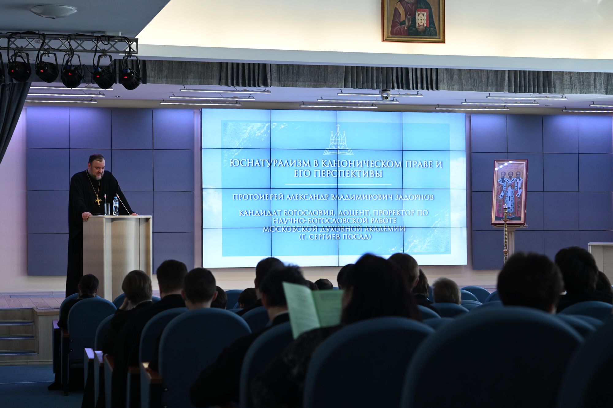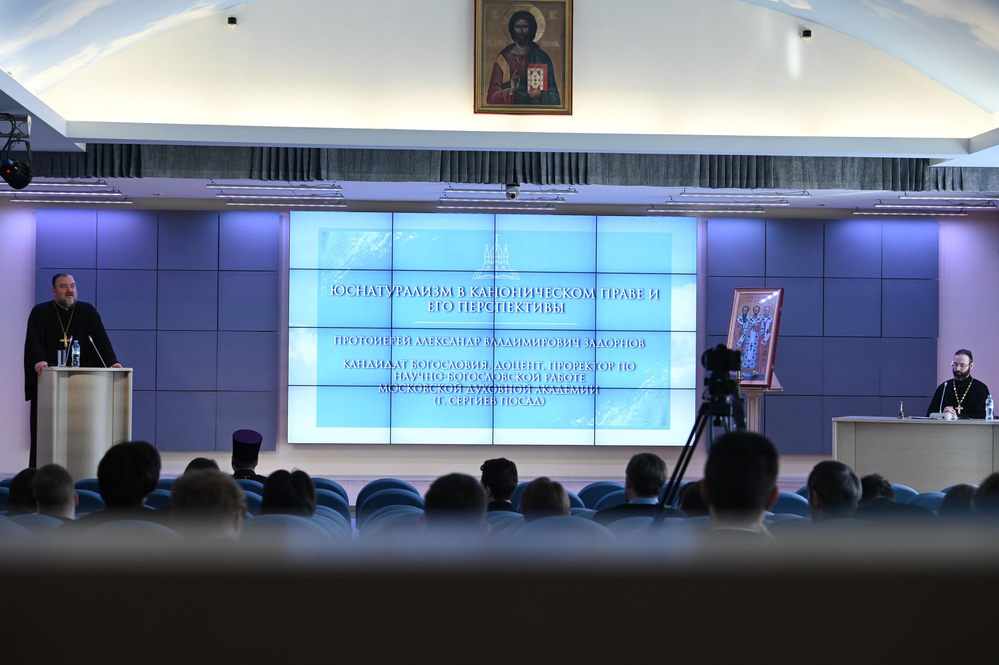 1. протоиерей Александр Владимирович Задорнов, кандидат богословия, доцент, проректор по научно-богословской работе Московской духовной академии (тема доклада: «Юснатурализм в каноническом праве и его перспективы»);