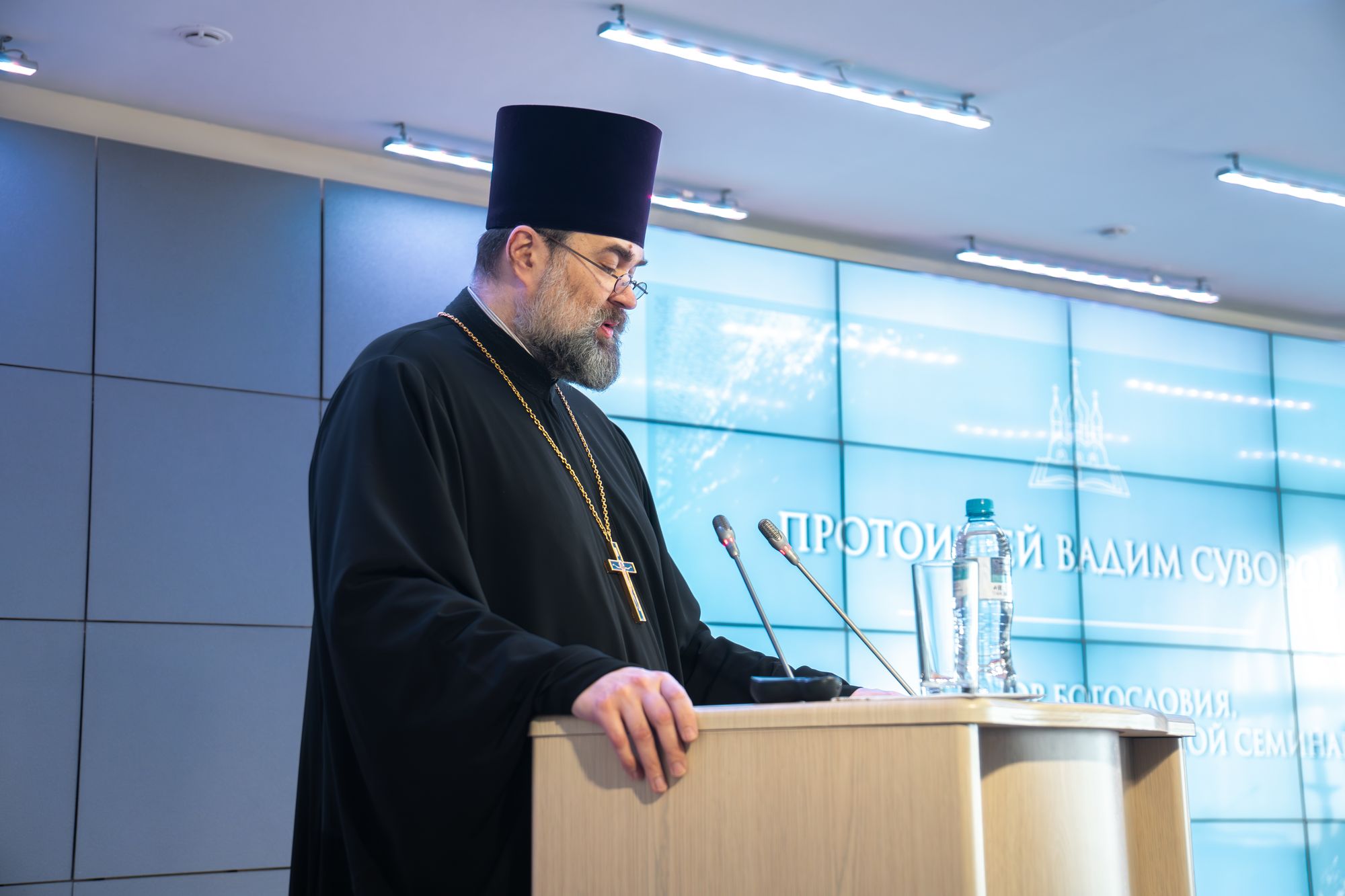 С приветственным словом к собравшимся обратился ректор Коломенской духовной семинарии, протоиерей Вадим Суворов, доктор богословия, профессор. Модератором заседания выступил иерей Василий Казинов, кандидат богословия, доцент, первый проректор Коломенской духовной семинарии.