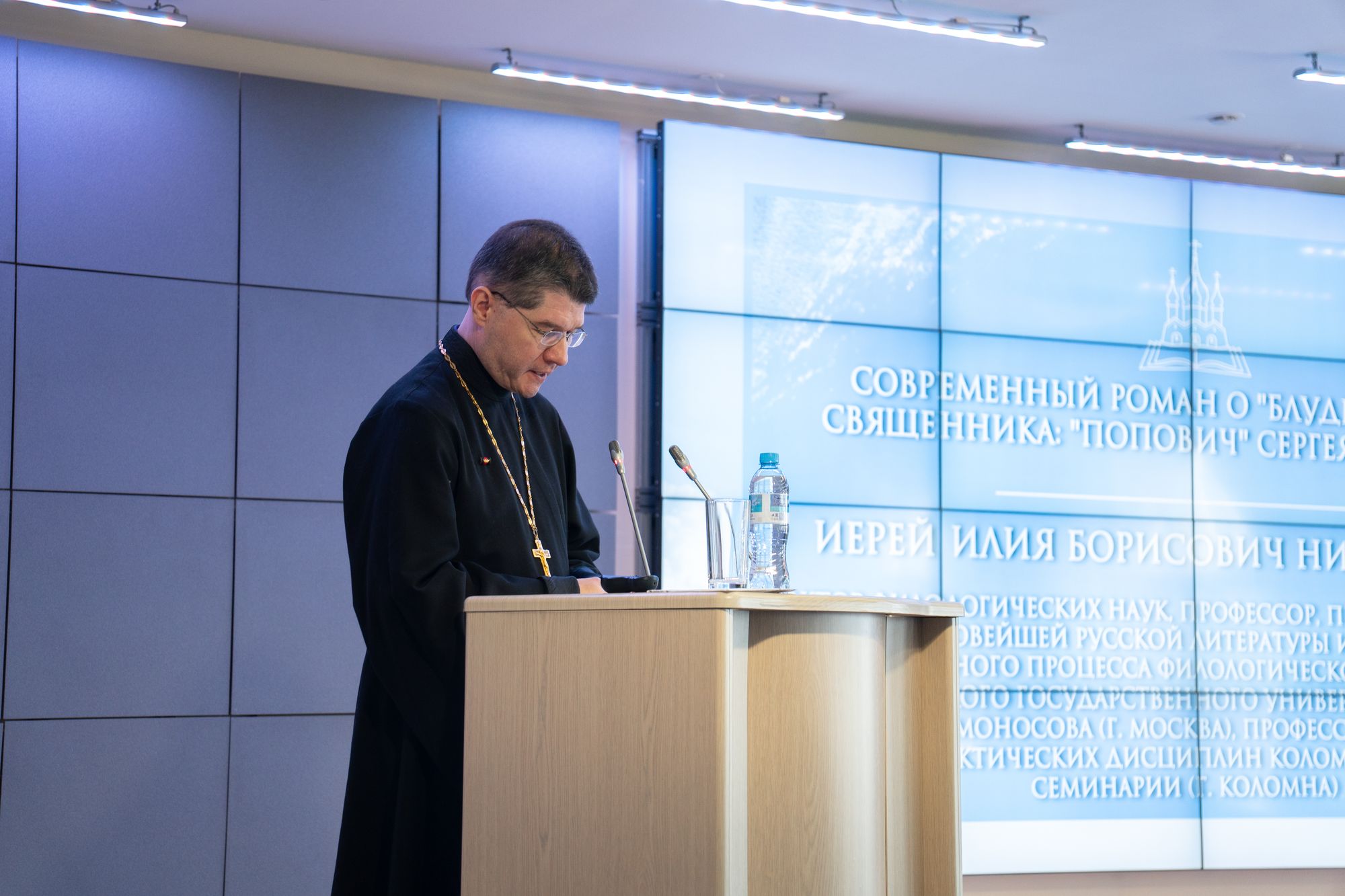 3. иерей Илия Борисович Ничипоров, доктор филологических наук, профессор, профессор кафедры истории новейшей русской литературы и современного литературного процесса Филологического факультета Московского государственного университета имени М.В. Ломоносова (г. Москва), профессор кафедры церковно-практических дисциплин Коломенской духовной семинарии (тема доклада: «Современный роман о "блудном сыне" священника: "Попович" Сергея Шаргунова»);