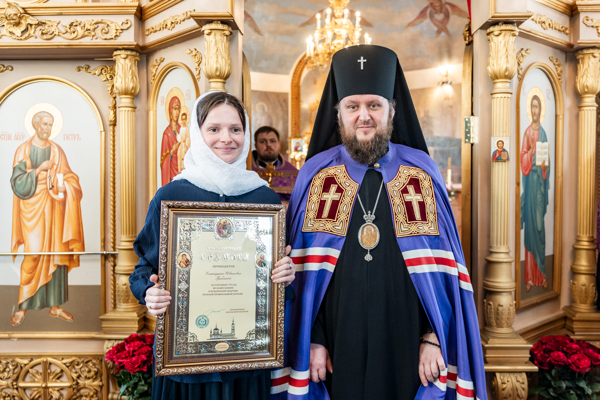 По окончании богослужения владыка вручил архиерейские грамоты сотрудникам и прихожанам храма и обратился к молящимся с архипастырским словом.