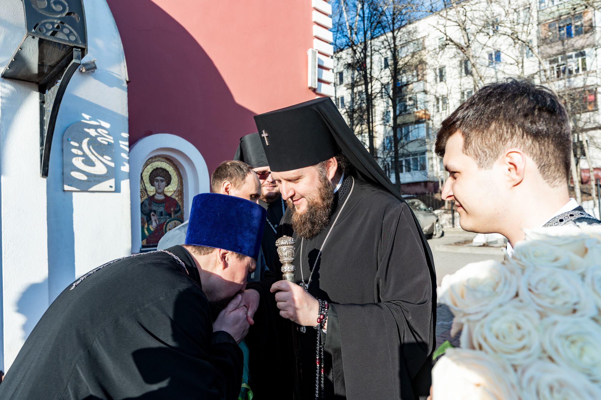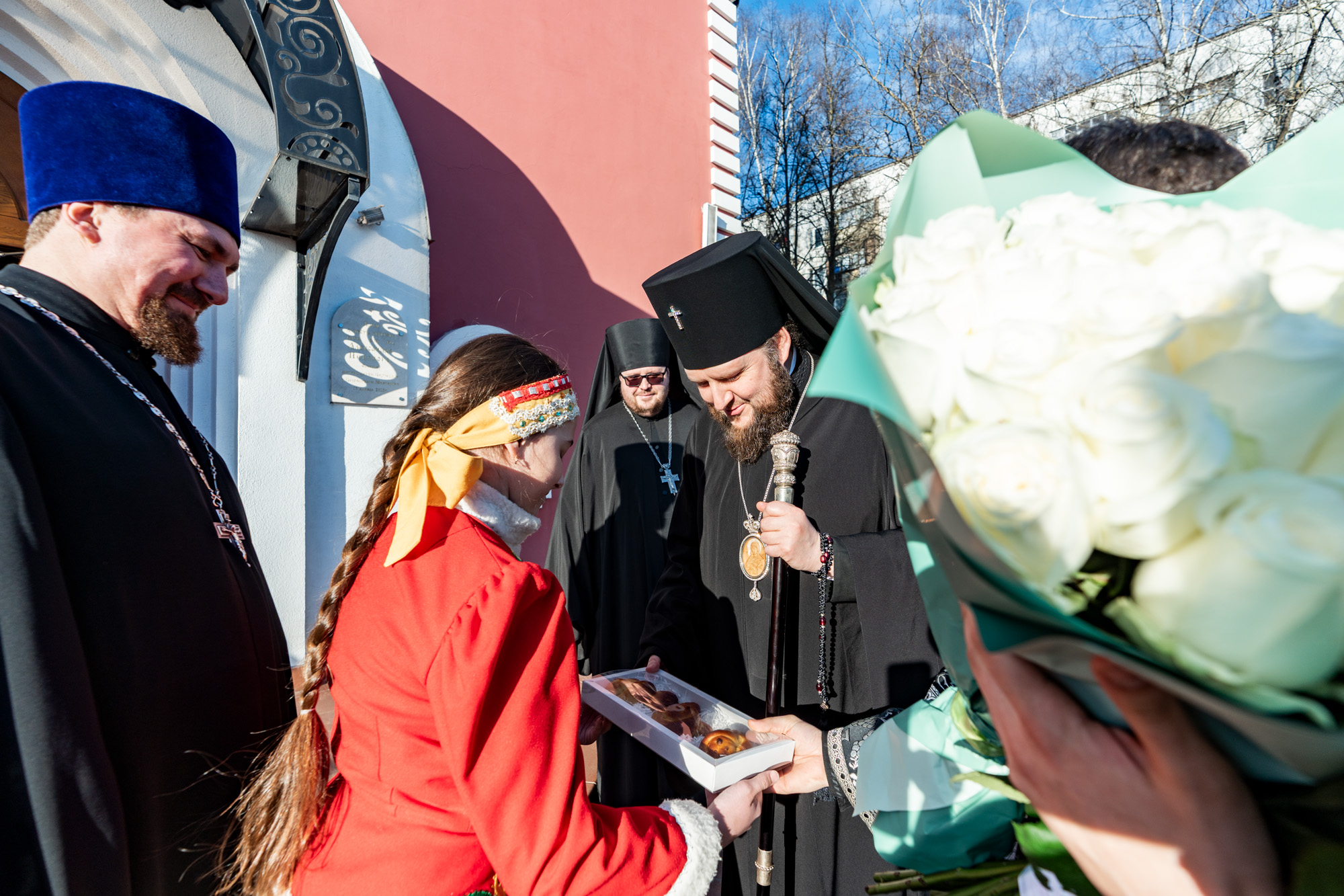 По окончании богослужения настоятель храма иерей Николай Шапорев поблагодарил владыку за архипастырский визит и преподнёс на молитвенную память икону святителя Луки Крымского.