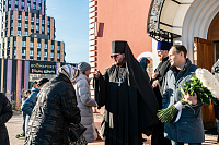 Его Высокопреосвященству сослужили благочинный Видновского церковного округа иеромонах Софроний (Горохольский), настоятель Александро-Невского храма иерей Николай Шапорев и клирики храма.