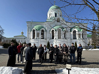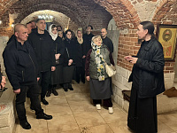 Отец Тимофей провел для сотрудников и ветеранов УИС экскурсию по монастырю и рассказал о его истории.
