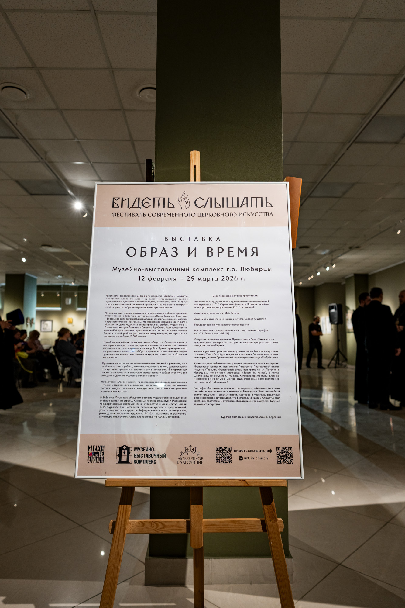 Завершившая свою работу выставка объединила произведения преподавателей и студентов ведущих художественных и духовных вузов страны — МГАХИ имени В.И.Сурикова, РГХПУ имени С.Г.Строганова, Академии акварели и изящных искусств Сергея Андрияки, ВГИКа, Московской и Санкт-Петербургской духовных академий, Православного Свято-Тихоновского гуманитарного университета. В экспозиции были представлены иконы, монументальная живопись, мозаика, скульптура и произведения декоративно-прикладного творчества, наглядно демонстрирующие преемственность поколений в церковном искусстве. Среди гостей церемонии закрытия были художники, искусствоведы, представители творческих союзов и многочисленные почитатели церковного искусства, которые высоко оценили организацию выставки и выразили надежду на продолжение подобных проектов в Люберцах.